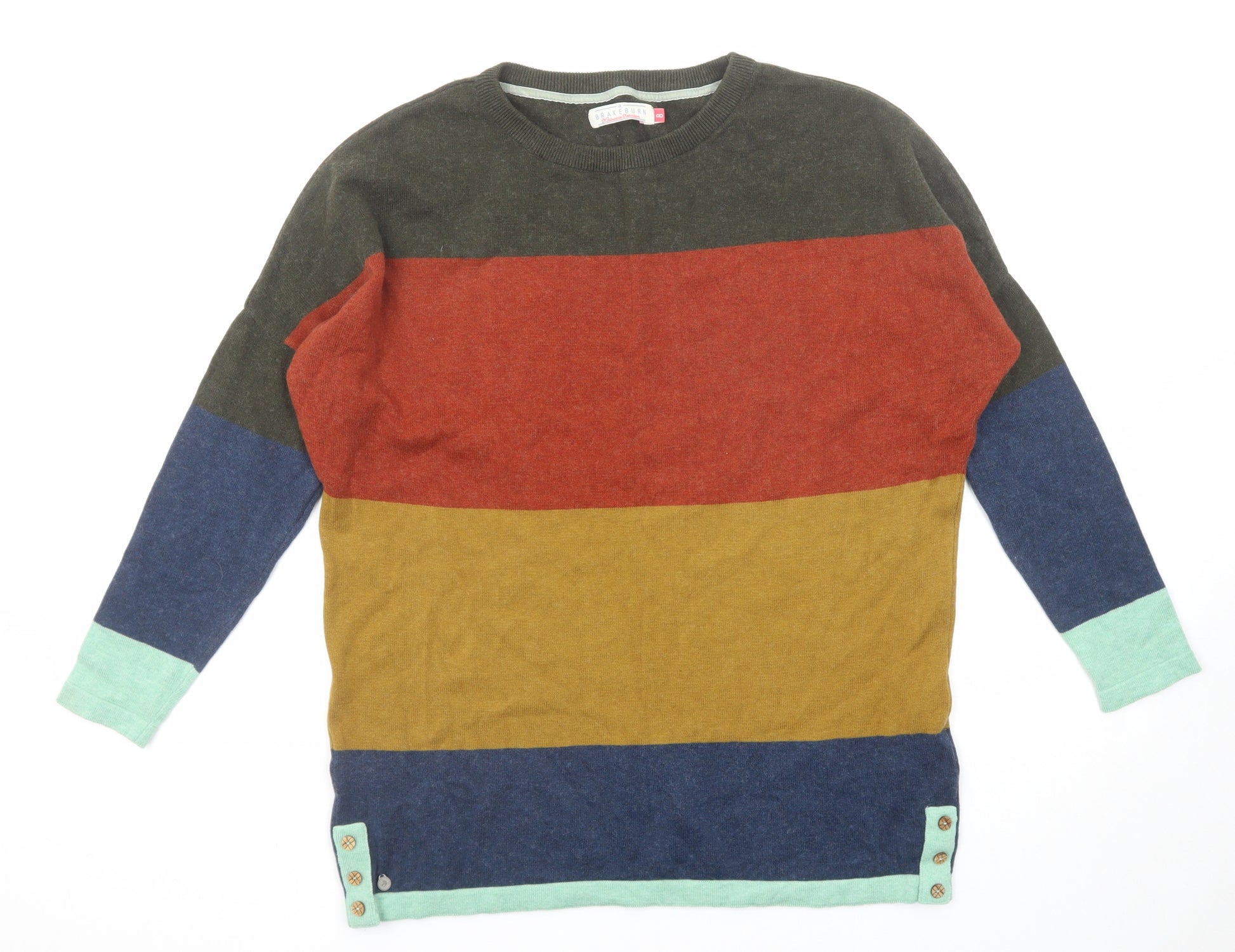 Womens Multicoloured Round Neck Striped Cotton Pullover Jumper Size 8
