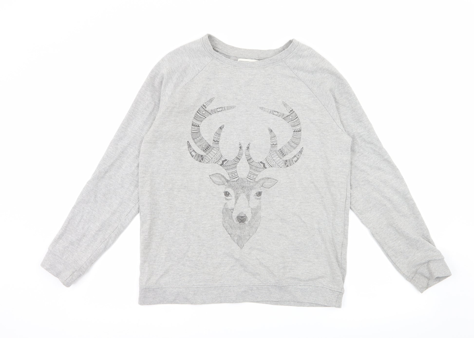 Womens Grey Jersey Pullover Sweatshirt Size M - Deer
