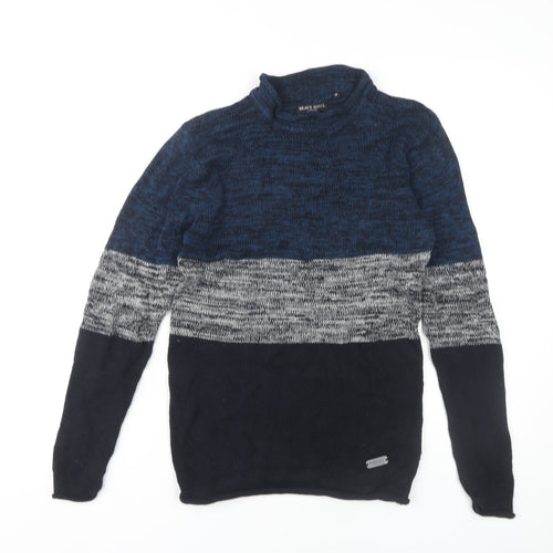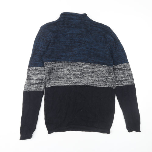 Men's Blue Striped Mock Neck Pullover Jumper M
