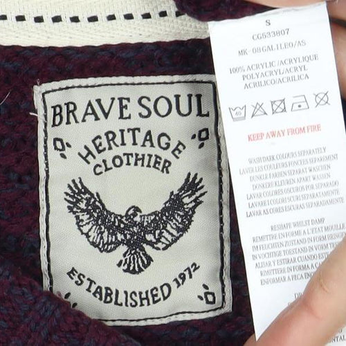 Step into style and comfort with the Brave Soul Men's Pullover Jumper, a perfect choice for any fashion-savvy individual. Crafted from 100% Acrylic, this jumper promises warmth and durability, making it an ideal companion for the cooler months of autumn and winter. The multicoloured design adds a unique flair to your wardrobe, setting you apart from the crowd with its blend of modern elegance and casual charm. Designed as a regular fit, this jumper ensures you’re comfortable throughout the day, whether you're out for a casual day or simply relaxing at home. The crew neck and long sleeves provide a classic silhouette, making it versatile enough to pair with jeans or chinos. Featuring a waffle-knit style, the jumper adds texture and depth to your ensemble, providing a timeless piece that complements various styles. Its easy-care nature means you can quickly wash it in the machine, promising practicality without compromising on style. Despite its excellent condition, the jumper has minor wear, adding to its character without detracting from its overall appeal. Elevate your seasonal wardrobe today with this stylish yet functional pullover, and enjoy the attention it garners every time you wear it.