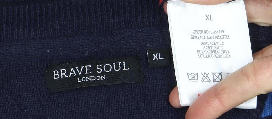 Make a bold statement with this Brave Soul Men's Pullover Jumper, crafted with a vibrant multicoloured striped pattern that is sure to make heads turn. Designed with the modern man in mind, this pullover features a comfortable crew neck and long sleeves, ideal for keeping warm during the autumn and winter seasons. The relaxed regular fit makes it perfect for casual outings, allowing you to blend style with comfort effortlessly. Made from 100% acrylic, this jumper is lightweight yet insulative, ensuring optimal warmth without the bulk. Its machine washable property ensures easy care, keeping your outfit looking fresh time after time. The colourful theme adds a playful twist to traditional winter wear, giving you the flexibility to pair it with various bottoms for a versatile look. Whether it's for a casual day out or a laid-back evening, this pullover jumper is a must-have addition to your wardrobe. Rest assured, this piece is in excellent condition with no visible damage, offering you high quality at a great value. Elevate your style and embrace the colourful flair in this standout piece.