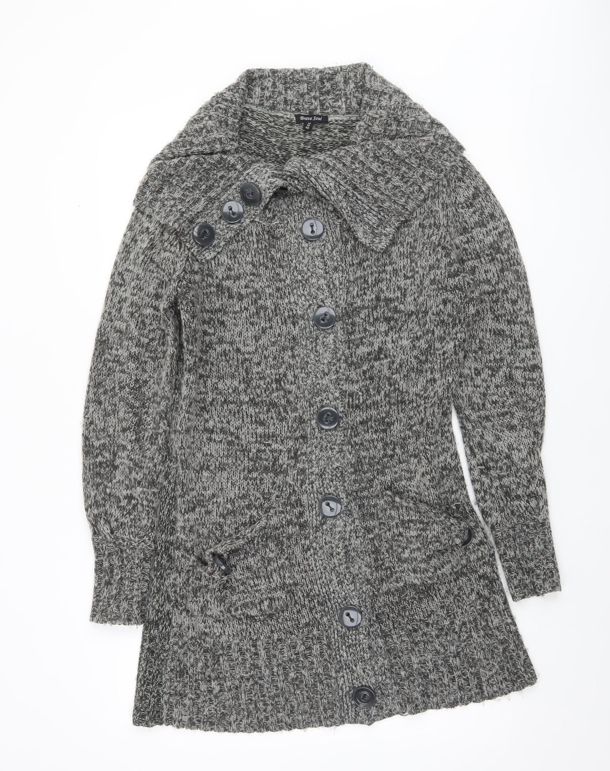 Women Grey Long Sleeve Collared Button Cardigan Size 14
