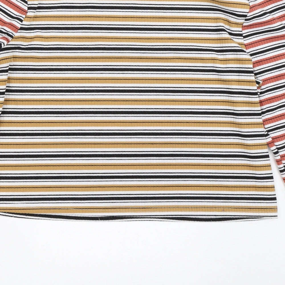 Brave Soul Women Beige Striped Cropped Knit T-Shirt Size M