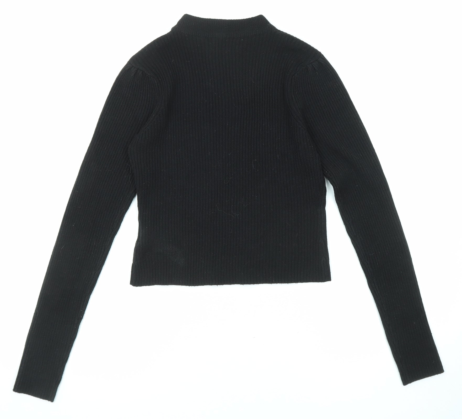Womens Black Mock Neck Acrylic Pullover Jumper Size M