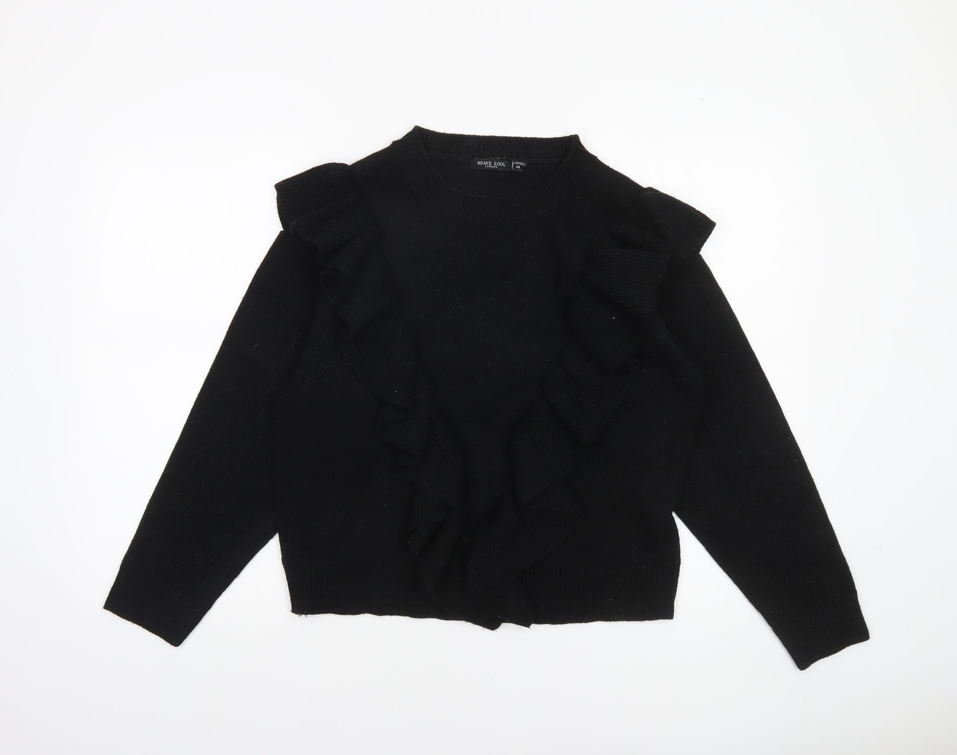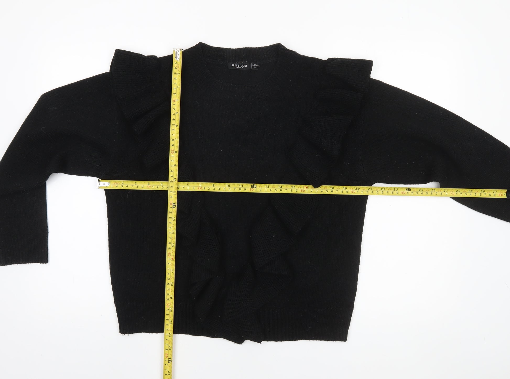 Womens Black Ruffle Knit Jumper Medium Long Sleeve Acrylic