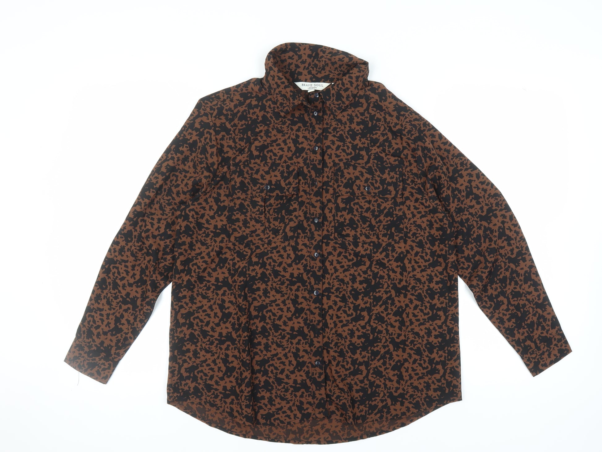 Upgrade your wardrobe with the stylish Brave Soul Women's Brown Animal Print Button-Up Shirt, perfect for adding a fierce touch to your ensemble. Designed for casual occasions, this versatile piece boasts a regular fit, ensuring comfort and easy movement throughout your day. The eye-catching animal print pattern in a rich brown hue adds a trendy and unique flair, making it an excellent choice for fashion-forward individuals. Featuring a classic collared neckline and long sleeves, this button-up shirt is ideal for wearing during the cooler autumn and winter months. The garment is crafted with machine-washable materials, ensuring easy care and maintenance without compromising style. Whether you're stepping out for a laid-back brunch or a casual outing with friends, this shirt will become a go-to piece in your collection. Pair it with your favourite jeans and boots for an effortlessly chic look that will turn heads wherever you go.