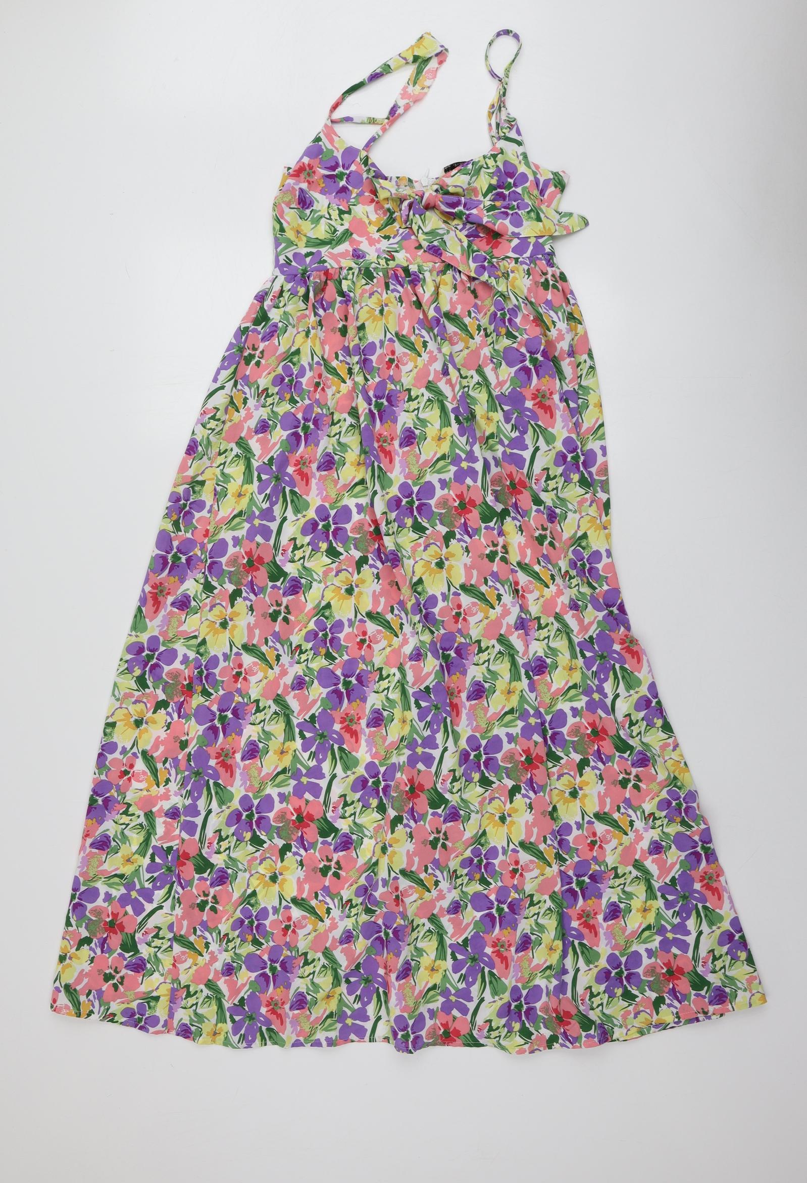 Womens Multicoloured Floral Polyester Maxi Size S Square Neck