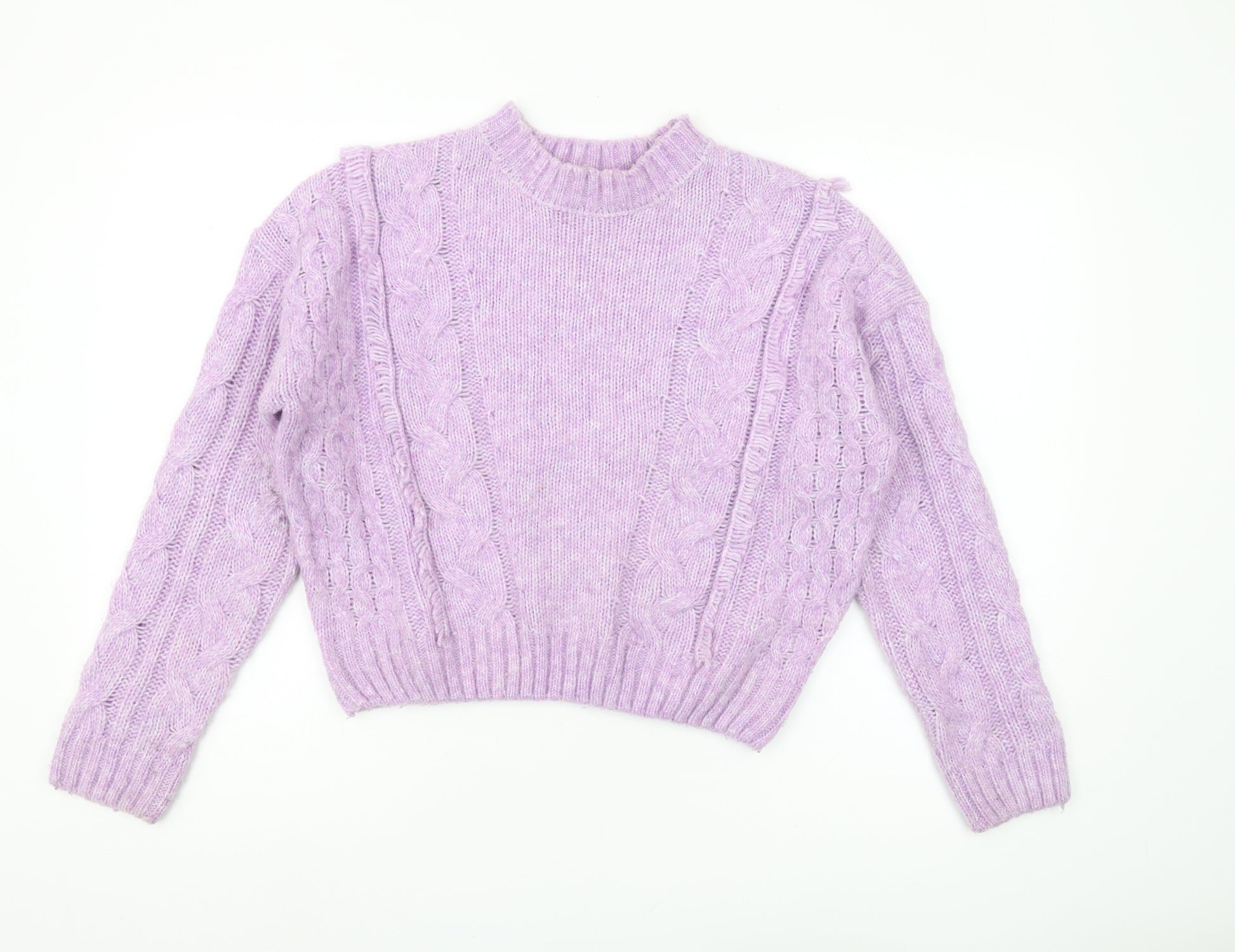 Step out in style and comfort with this elegant Brave Soul Women's Purple Cable Knit Jumper. Designed for the autumn and winter seasons, this long-sleeve pullover is your perfect companion in chilly weather. With its chic mock neck and no-fuss regular fit, you can pair it effortlessly with your favourite jeans or skirts for a timeless casual look. The light purple hue adds a touch of femininity, ensuring you stand out no matter where you go. Crafted from a cosy blend of 76% polyester and 24% wool, it offers not only warmth but also a soft, comfortable feel against your skin. The intricate cable-knit design highlights the attention to detail and craftsmanship that brave Soul is known for. It's machine washable, making maintenance a breeze, so you can enjoy wearing it time after time without any hassle. Whether you're heading to a casual brunch or a relaxed evening gathering, this knit jumper is versatile enough to suit any occasion. Its excellent condition assures you of quality and longevity, making it a valuable addition to your wardrobe. Invest in this timeless piece today and experience the perfect blend of style and comfort.