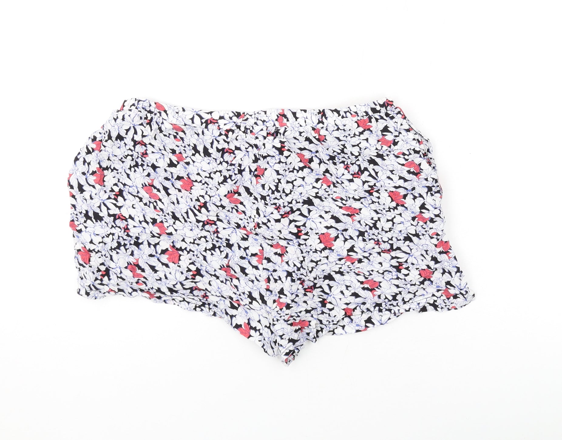 Womens White Floral Viscose Basic Shorts Size S L3 in Regular Drawstring