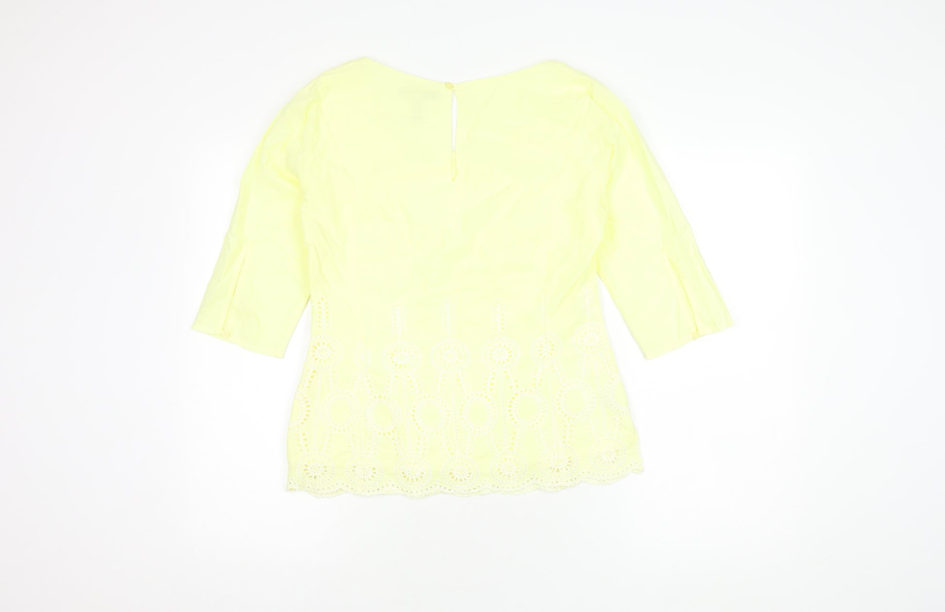 Step into spring with a touch of vibrant elegance with this Bravissimo women's top in a cheerful shade of yellow. Designed for those who appreciate the blend of style and comfort, this top is perfect for casual outings or even semi-formal gatherings. The 3/4 sleeves offer a charming silhouette that complements the round neckline, making it a versatile addition to your wardrobe. Crafted to accentuate the joys of warmer seasons, the yellow hue captures both the spirit of the sun and the freshness of spring. The solid pattern ensures that this top remains a timeless piece, suitable for various occasions where simplicity meets sophistication. Though the exact material is unspecified, you can expect the quality and comfort synonymous with the Bravissimo brand. This top is in excellent condition, ready to bring joy to its next wearer. Whether paired with jeans for a casual look or combined with a skirt for an evening out, it's a staple you'll reach for again and again. Don't miss the chance to own this piece that's not just about style but also about celebrating the seasons.