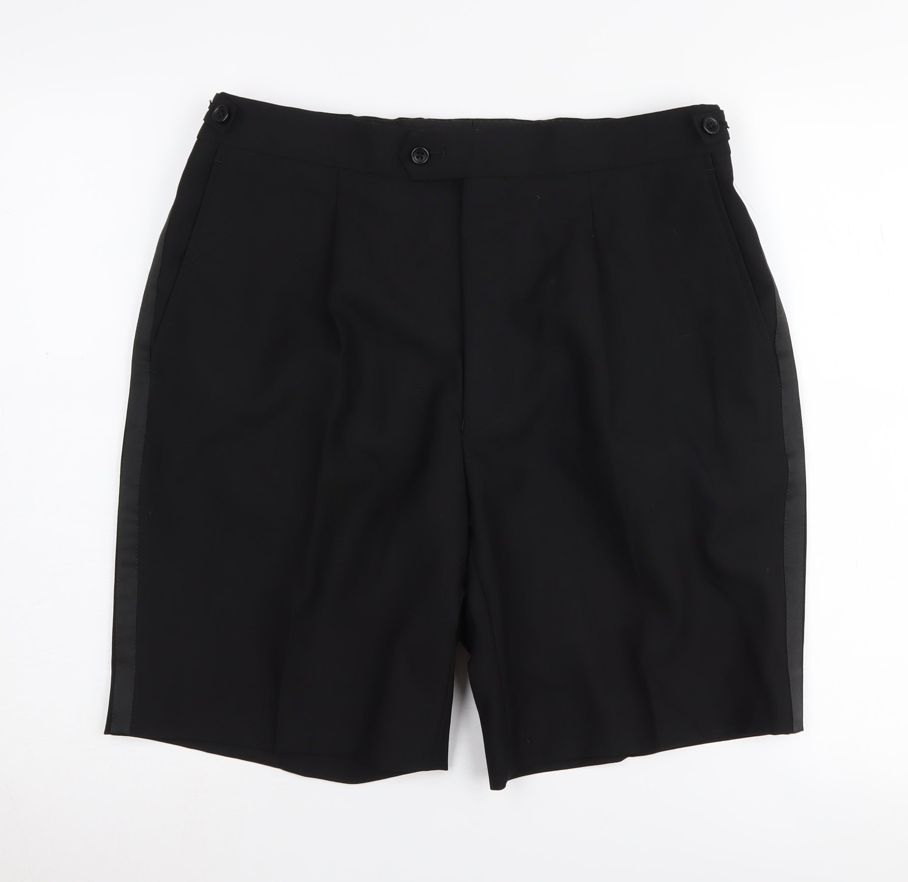 Elevate your wardrobe with these Brook Taverner formal shorts, designed for the modern gentleman. Crafted with a luxurious blend of 55% polyester and 45% wool, these shorts provide a sophisticated look while ensuring comfort and durability. The elegant black colour adds a versatile touch, allowing you to pair these shorts with various tops for different occasions. Featuring a chic flat front design, these shorts are perfect for formal or business settings. The smart tailoring includes a buttoned closure and convenient pockets for practicality. The tailored fit ensures a sharp appearance, making these shorts an excellent choice for events where style is a priority. With a comfortable waist size of 92 cm, these shorts fit seamlessly into any wardrobe. Whether you're attending a business meeting or a formal gathering, these Brook Taverner shorts will keep you looking polished and confident. Embrace timeless style and sophistication with this essential piece for the distinguished gentleman.