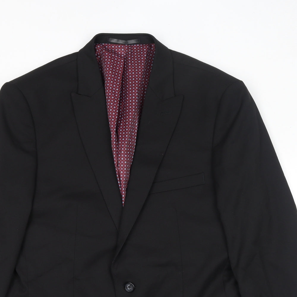 Mens Black Polyester Jacket Suit Jacket Size 38 Regular