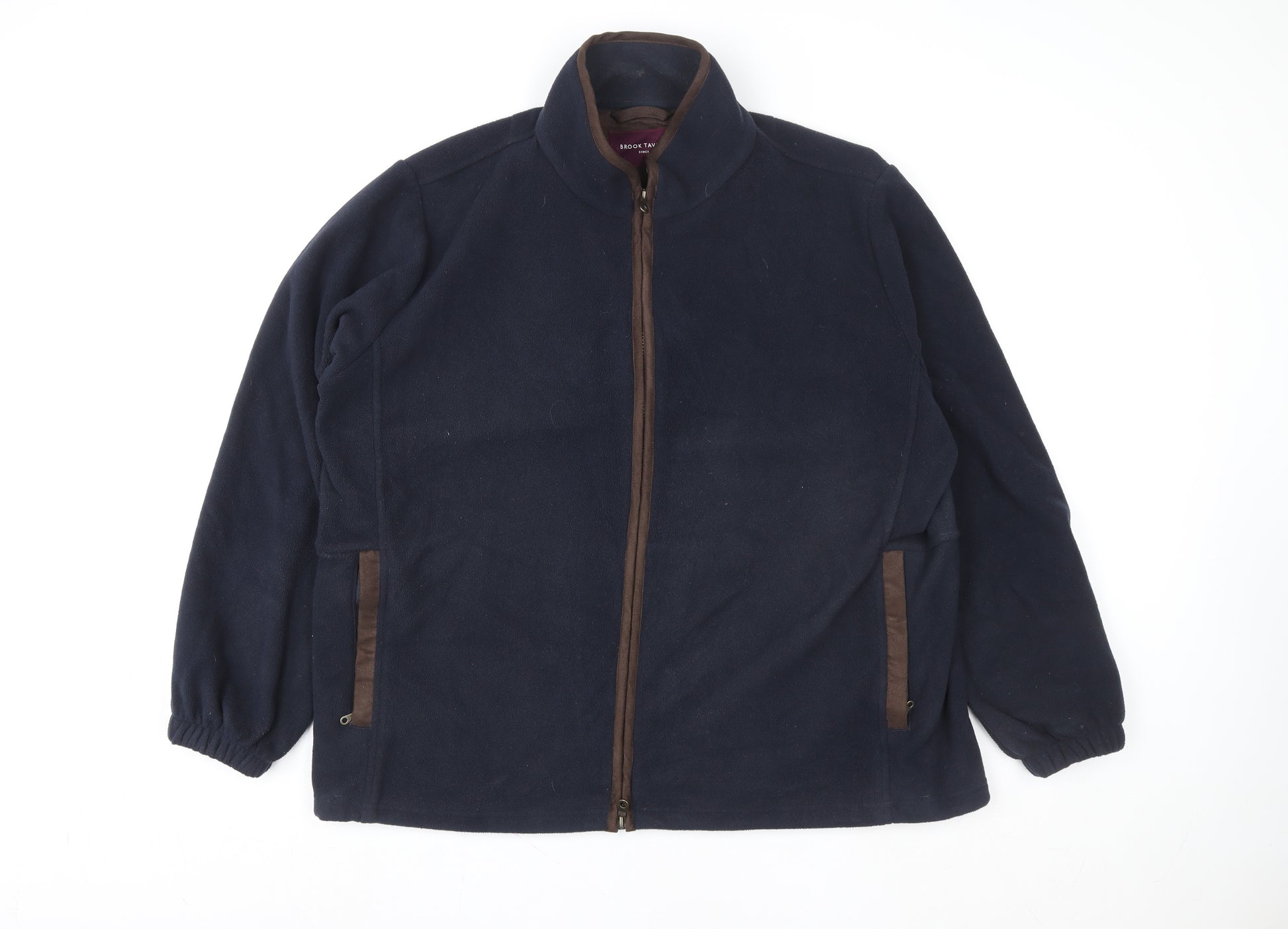 This Brook Taverner men's blue fleece jacket offers a refined blend of comfort, durability and timeless classic style. Crafted from 100% polyester fleece, the jacket provides reliable warmth while staying lightweight and breathable, ideal for colder months. The Baltimore model showcases a mid-length cut with a stand-up collar, perfect for retaining warmth and blocking out cool breezes. Its deep navy-blue tone with subtle brown trim around the zips and collar adds a touch of sophistication while maintaining a smart casual appeal. Designed with functionality in mind, the jacket features a full zip closure for easy wear, two practical zippered side pockets to keep essentials secure, and elastic cuffs ensuring a snug fit. The overall fleece texture enhances softness and provides a cosy feel during autumn and winter outdoor activities, from walking and hiking to casual commuting. The polyester lining ensures a smooth interior, maintaining comfort throughout the day. This piece is machine washable, making it easy to care for and maintain its crisp look. The sizing, at 3XL, offers a relaxed fit suited to those preferring extra room or layering over shirts and knitwear. Though pre-owned, it remains in very good condition with only minimal signs of gentle wear, showing no visible damage or stains. Retailing new at a considerably higher price, this jacket offers outstanding value for those seeking a premium-quality men’s fleece from an established British heritage brand. Combining practicality, warmth, and understated elegance, it’s a stylish and dependable addition to any gentleman’s wardrobe – suitable for both outdoor leisure and everyday casual wear. A great choice for those wanting both comfort and classic appeal from a trusted name in menswear.