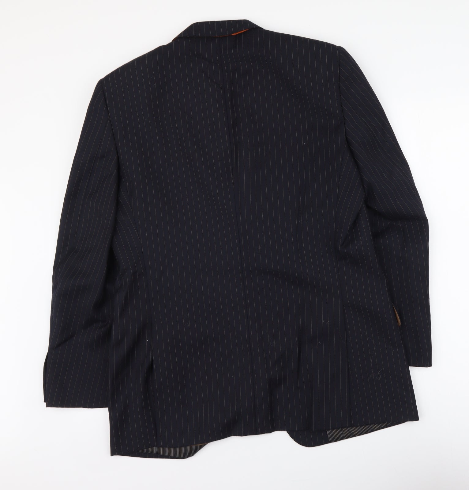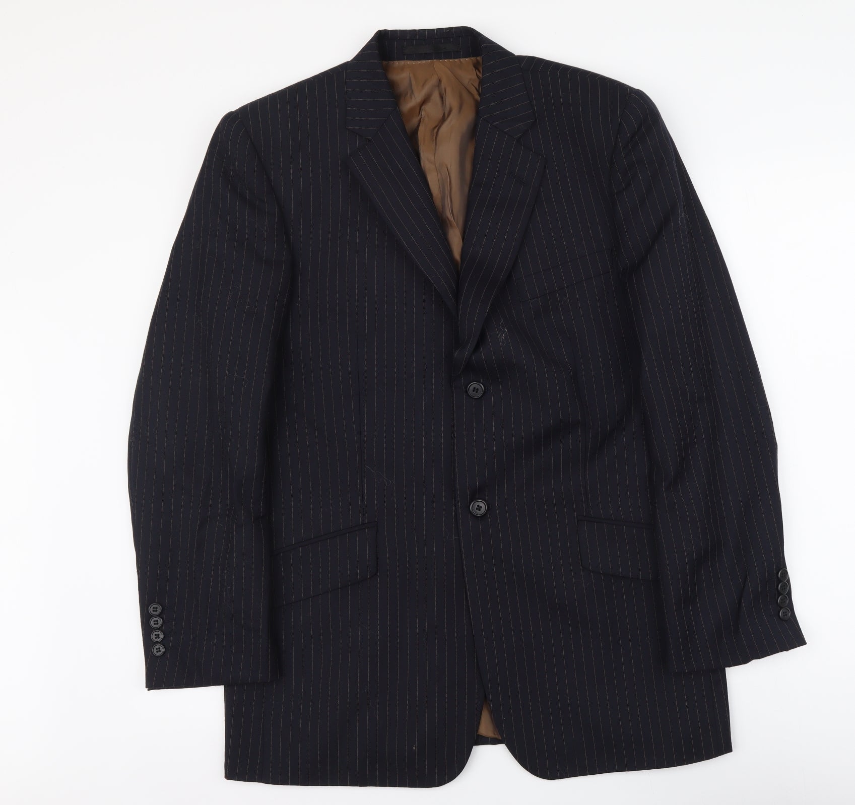 Mens Blue Striped Polyester Jacket Suit Jacket Size M