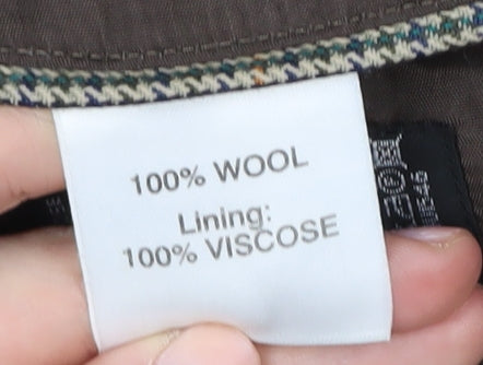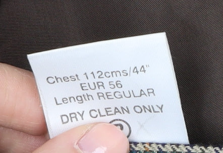Introduce the elegance of timeless style into your wardrobe with this Brook Taverner men's blazer. Made from 100% wool, this classic tweed blazer features a sophisticated brown check pattern that is suitable for a range of formal and business occasions. Perfectly tailored in a classic fit, this regular-length jacket is built to offer comfort without sacrificing any style. The two-button, single-breasted front is complemented by notch lapels, adding to the blazer’s traditional charm.The blazer is fully lined with viscose, ensuring a smooth and comfortable wear. With its four-button sleeve style and double-vented back, the jacket offers both style and practicality. Inner pockets add a touch of convenience, making this piece as functional as it is fashionable.Ideal for autumn and winter, the timeless design of this jacket is perfect for weddings, business meetings, or any formal occasion. Despite its excellent used condition, it shows no signs of wear, embodying Brook Taverner’s commitment to quality and enduring style.Pair this classic blazer with your favourite trousers for a polished, professional look or wear it over a fine-knit jumper for a casual yet refined outfit. This versatile piece promises to enhance your wardrobe with its rich texture, sophisticated silhouette, and enduring appeal.