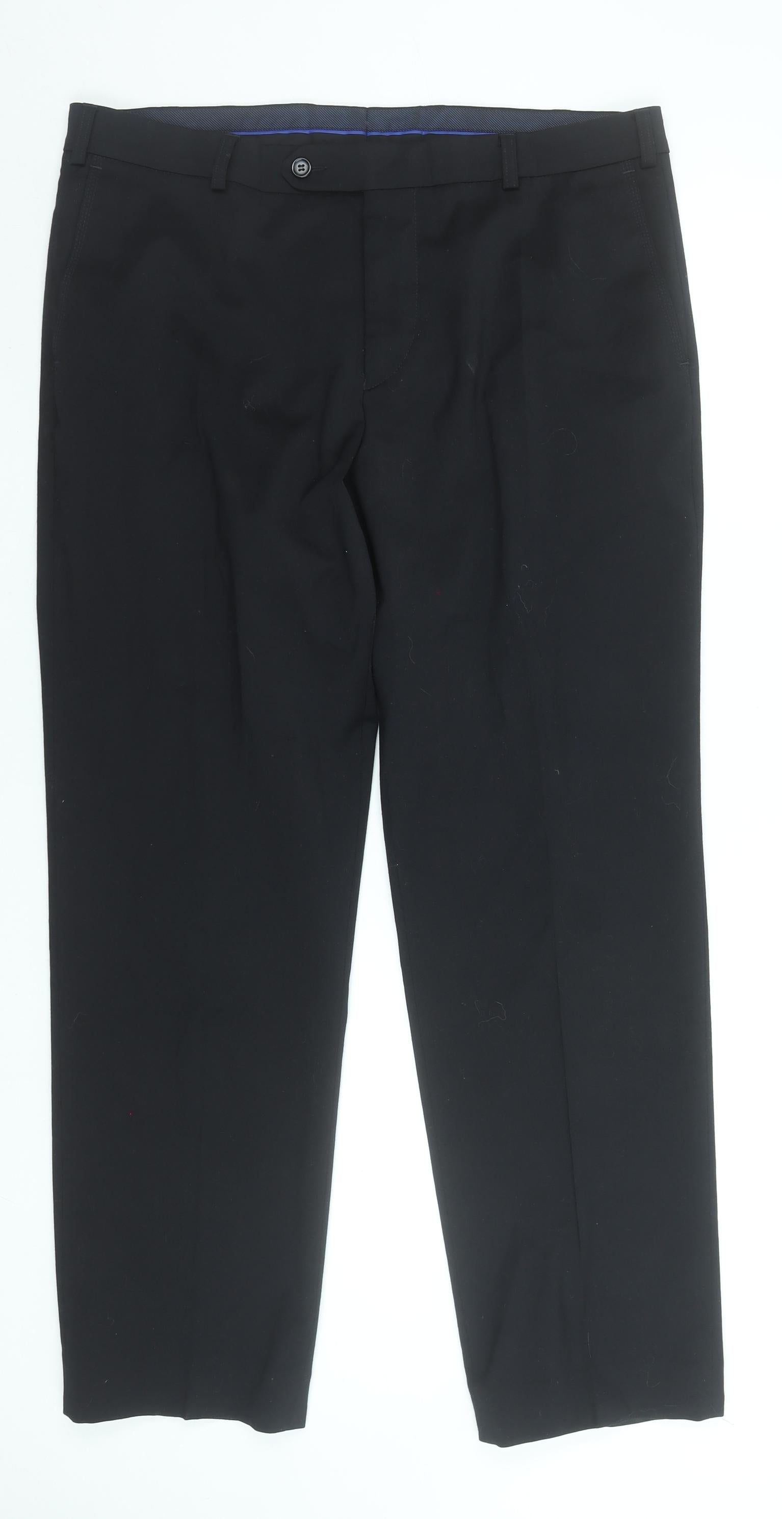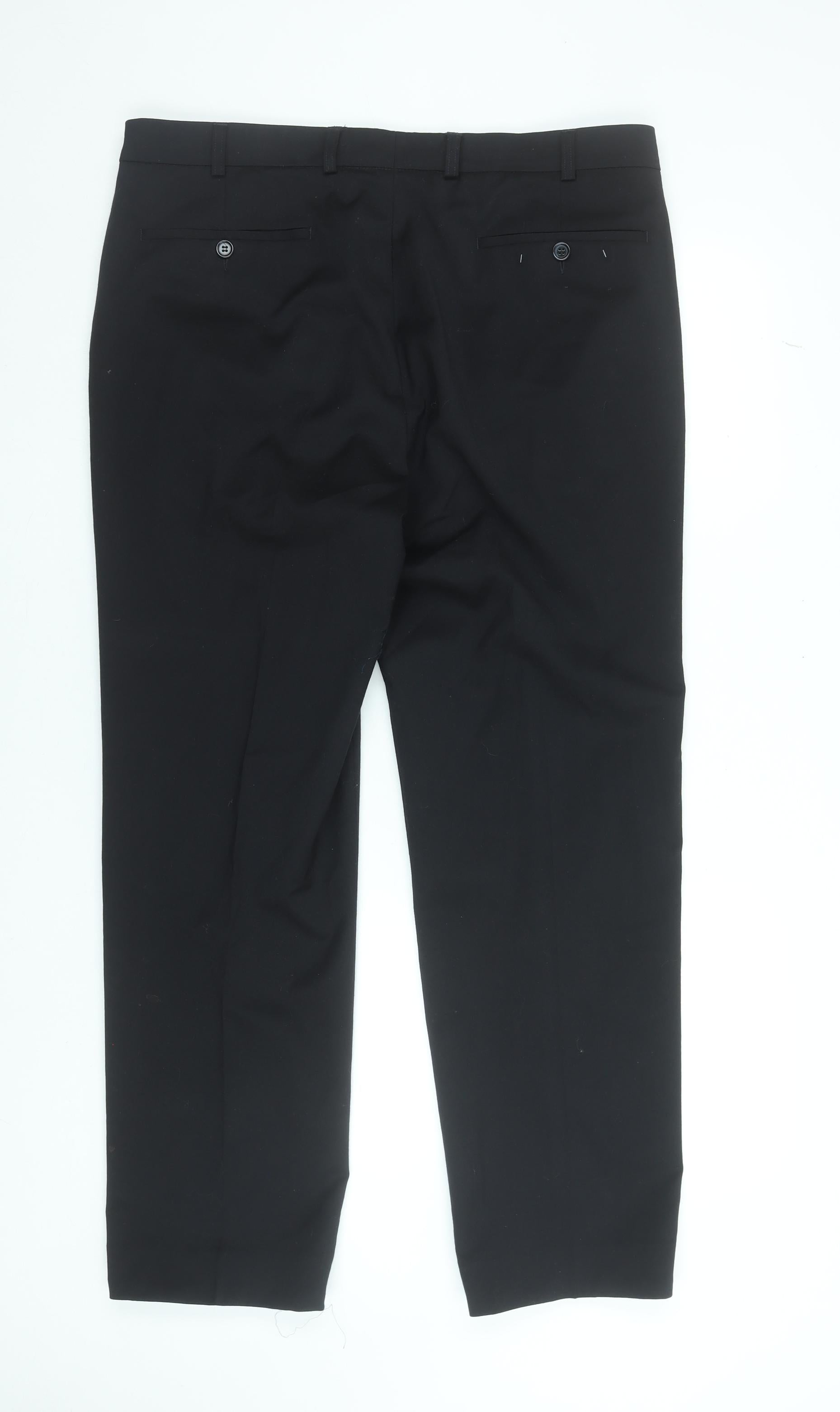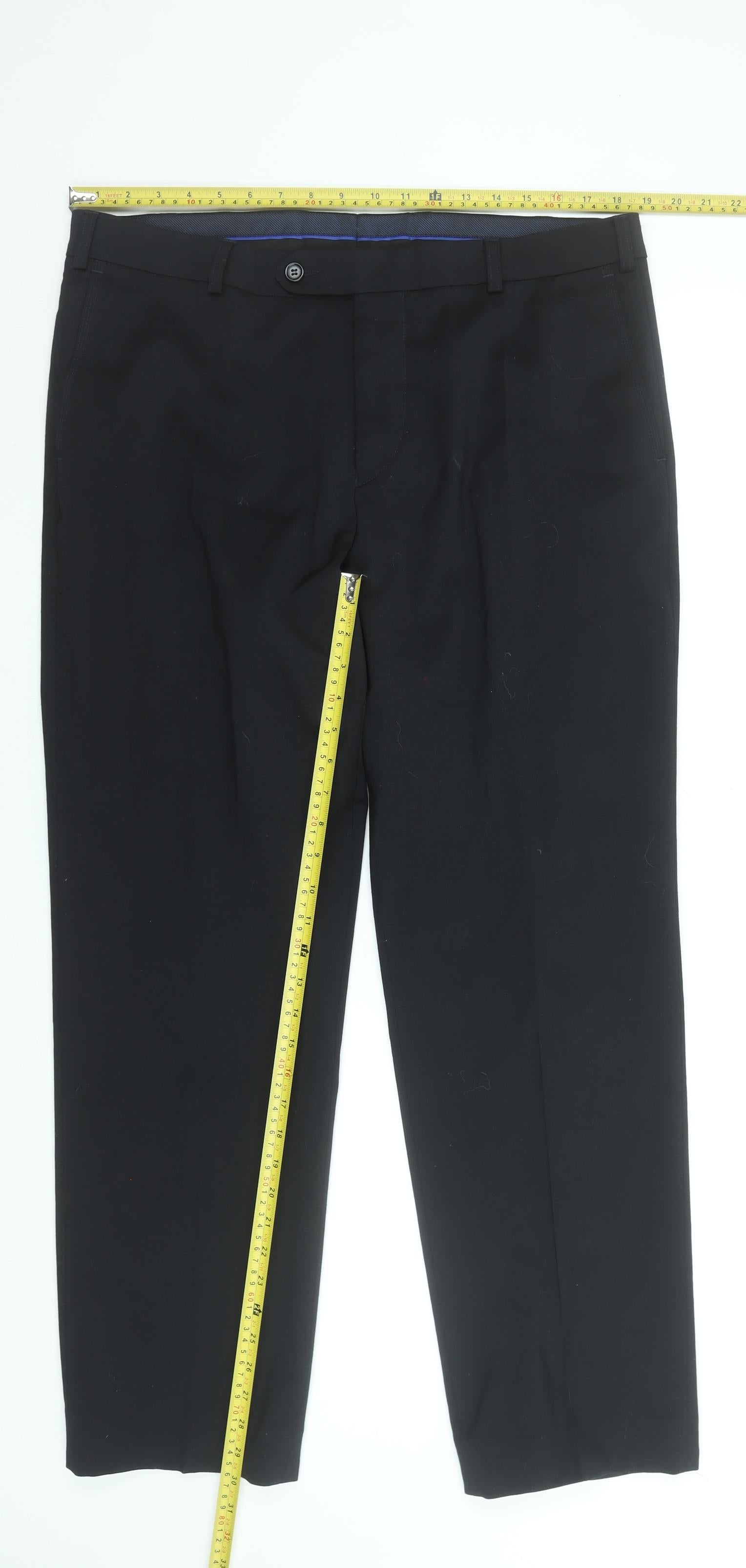 Men's Black 38R Dress Trousers Wool Blend Regular Fit