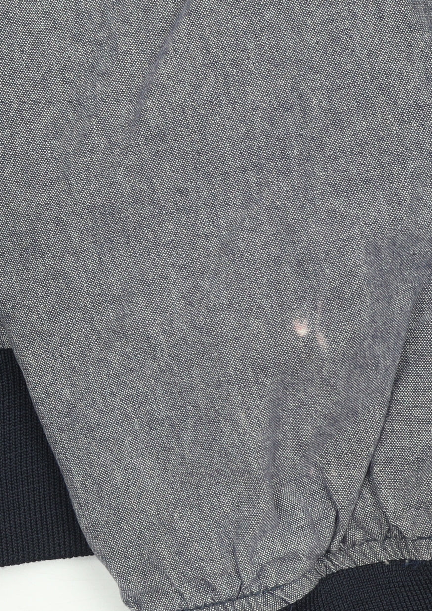Elevate your casual wardrobe with this BS Quality Apparel men’s bomber jacket in a versatile grey chambray fabric. Designed for both comfort and style, this jacket offers a contemporary twist on a classic look. Crafted from 100% cotton, it provides lightweight breathability ideal for spring and autumn wear. The soft cotton lining ensures added comfort while maintaining a relaxed, easygoing fit perfect for everyday layering.Featuring a sleek full zip fastening, stand-up collar with button detailing, and ribbed cuffs and hem for a snug fit, this piece blends practicality with understated style. The side flap pockets add both functionality and aesthetic appeal, enhanced by subtle button accents. The durable outer shell crafted from washed cotton chambray gives the jacket a casual, lived-in appearance that pairs effortlessly with jeans, chinos, or shorts.This jacket’s versatile grey hue complements a wide range of outfits and occasions, from casual daytime wear to weekend outings. Its simple yet modern design ensures it remains a timeless addition to any man’s wardrobe. The lightweight cotton makes it ideal for transitional seasons, offering enough warmth for cooler days without being too heavy.Though pre-owned, the jacket remains in good overall condition with only minor imperfections—specifically, a small mark and light surface stain that do not detract from its wearability or style. For those seeking a comfortable, easy-to-wear piece that embodies effortless sophistication, this BS Quality Apparel bomber jacket is an excellent choice.Perfect for men who appreciate casual elegance, this jacket delivers a combination of style, comfort, and practicality at an affordable price. Pair it with your favourite trainers and a simple t-shirt for a relaxed, versatile look that transitions easily from day to night.