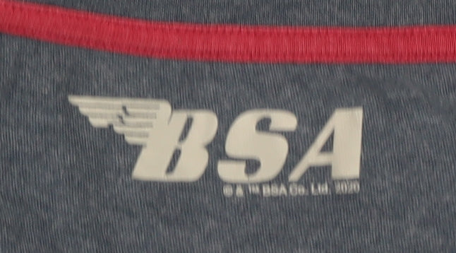 Embrace the spirit of classic motorcycle culture with this BSA Men's T-Shirt. Made from a blend of soft cotton and durable polyester, this regular fit tee promises comfort and longevity. Sporting a bold graphic print of a motorcycle on a blue fabric, it features a crew neckline and short sleeves, perfect for laid-back outings or casual meet-ups. The T-shirt's logo accent adds a touch of authenticity, elevating its appeal to motorcycle enthusiasts and fashion aficionados alike. Ideal for all seasons, it's a versatile addition to any wardrobe. Conditioned to excellent standards, it shows minimal signs of use, ensuring a great value for your wardrobe essentials.