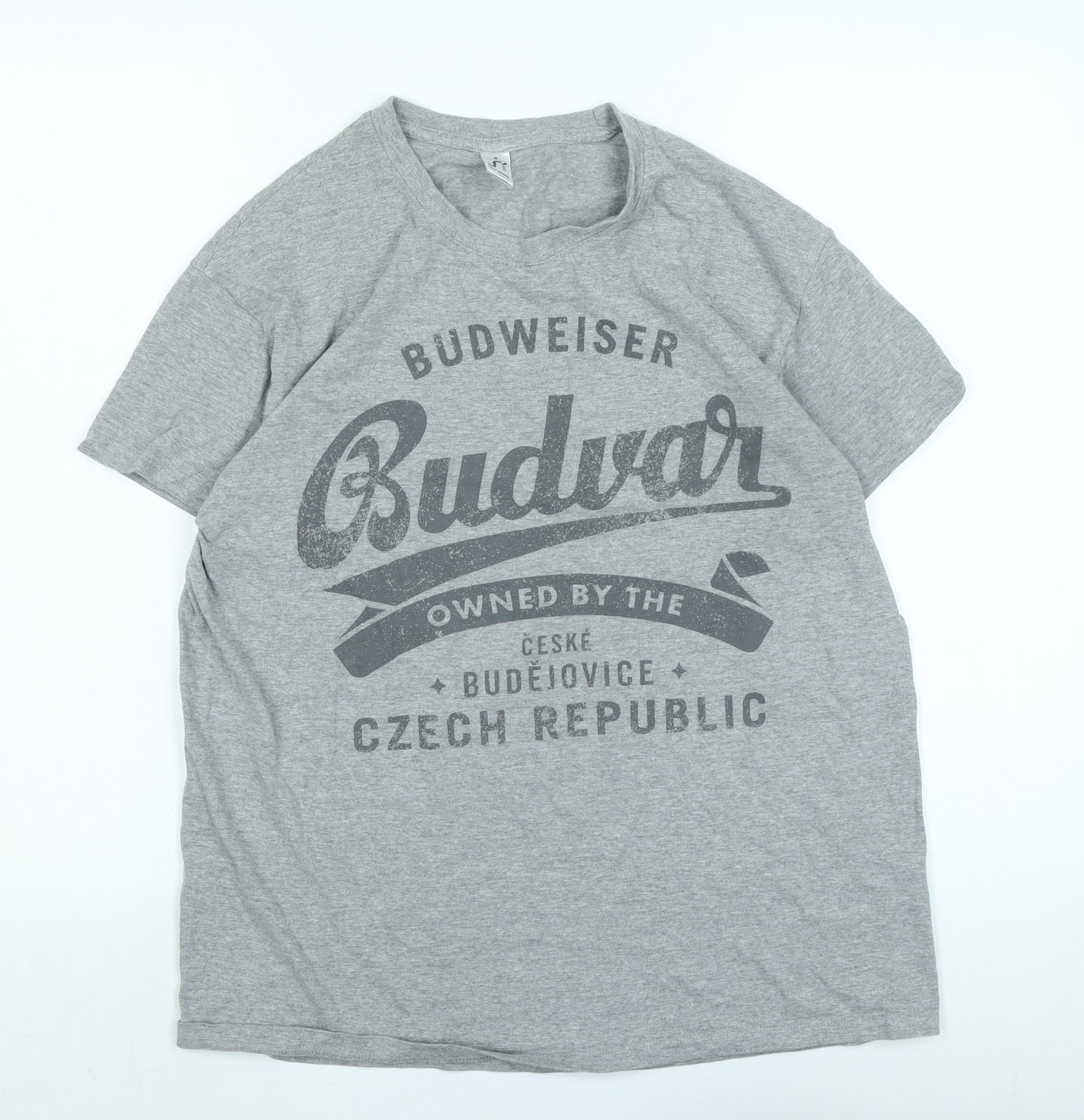 Mens Grey Cotton T-Shirt Size M Crew Neck - Budvar