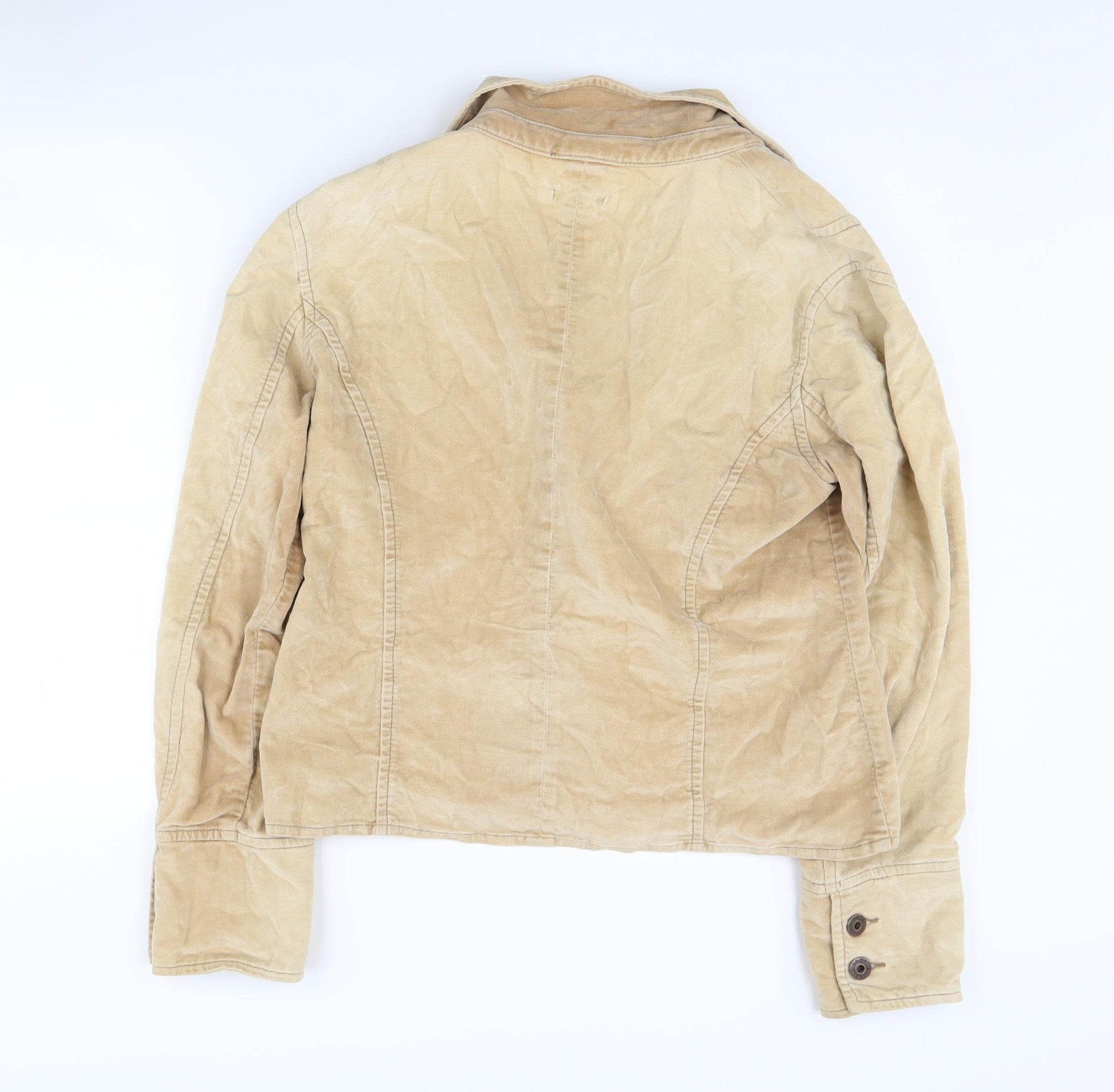 Refresh your wardrobe with this versatile Buffalo Shop Women's Beige Jacket, perfect for casual outings. Size L, it's designed for a relaxed fit that's comfortable and stylish. Crafted from 98% cotton with a hint of spandex, the jacket offers a soft touch and slight stretch for ease in movement. This piece features a classic button closure and a short length, making it a chic addition to your ensemble. The beige colour offers a neutral foundation, seamlessly complementing a variety of outfits. Ideal for the transitional seasons of autumn and spring, this jacket is lightweight yet sturdy, ensuring durability while maintaining a fashionable edge. Although pre-loved, it remains in excellent condition with minor creasing, ready to enhance your style with its timeless appeal. Machine washable, this jacket ensures easy maintenance. Add this essential piece to your collection and enjoy its comfort and versatility on casual occasions.