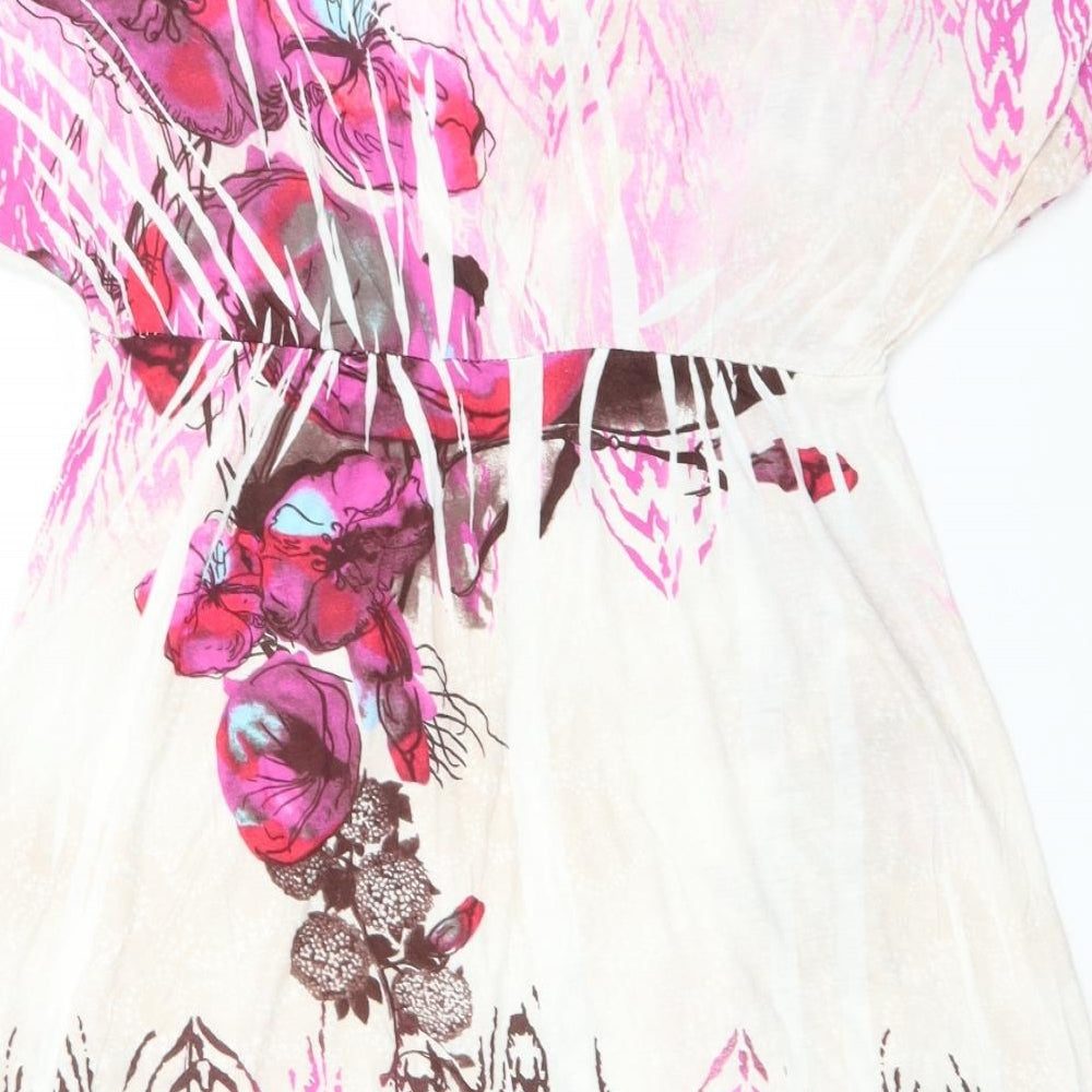 Womens White Floral Viscose Basic T-Shirt Size 14 V-Neck