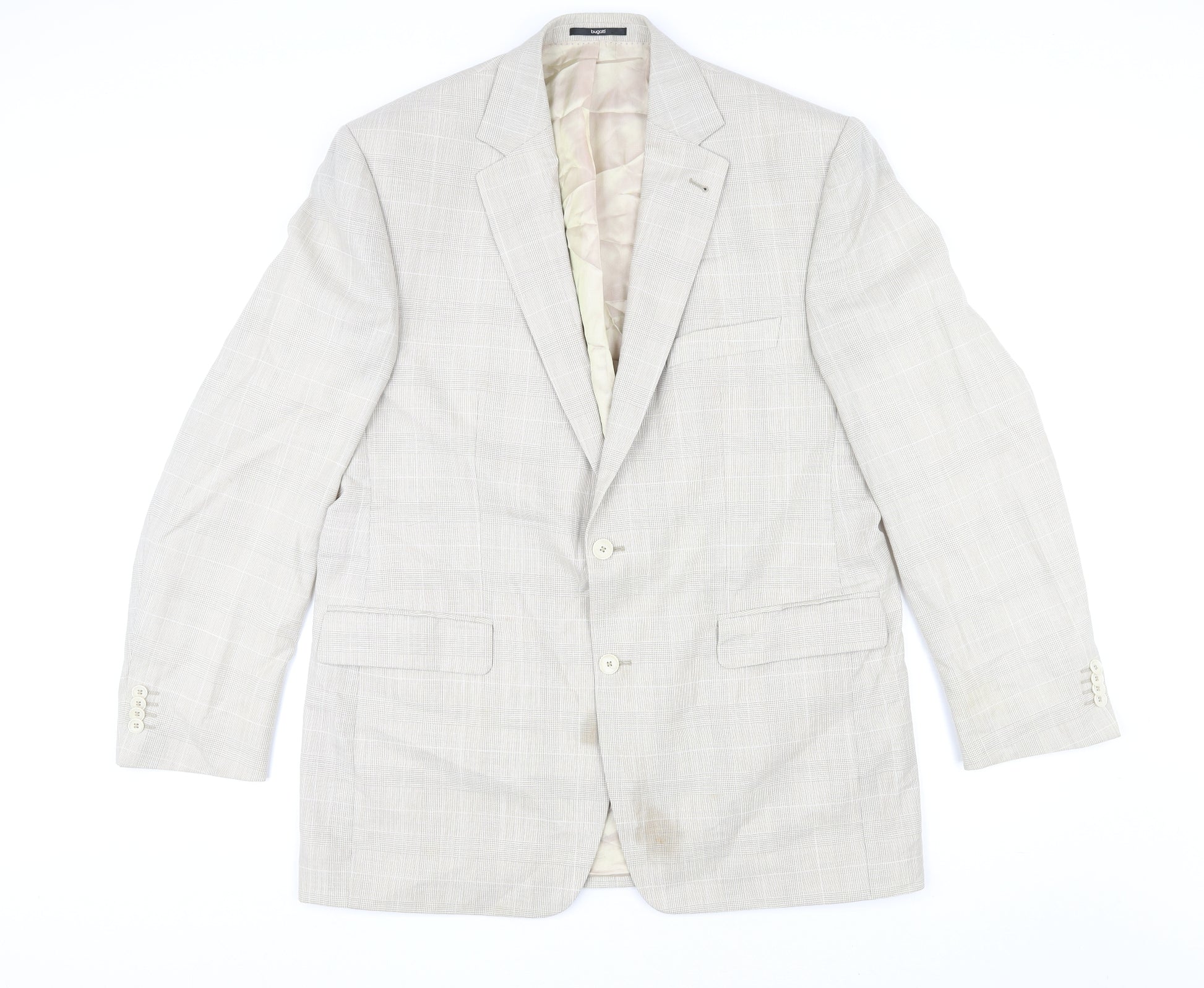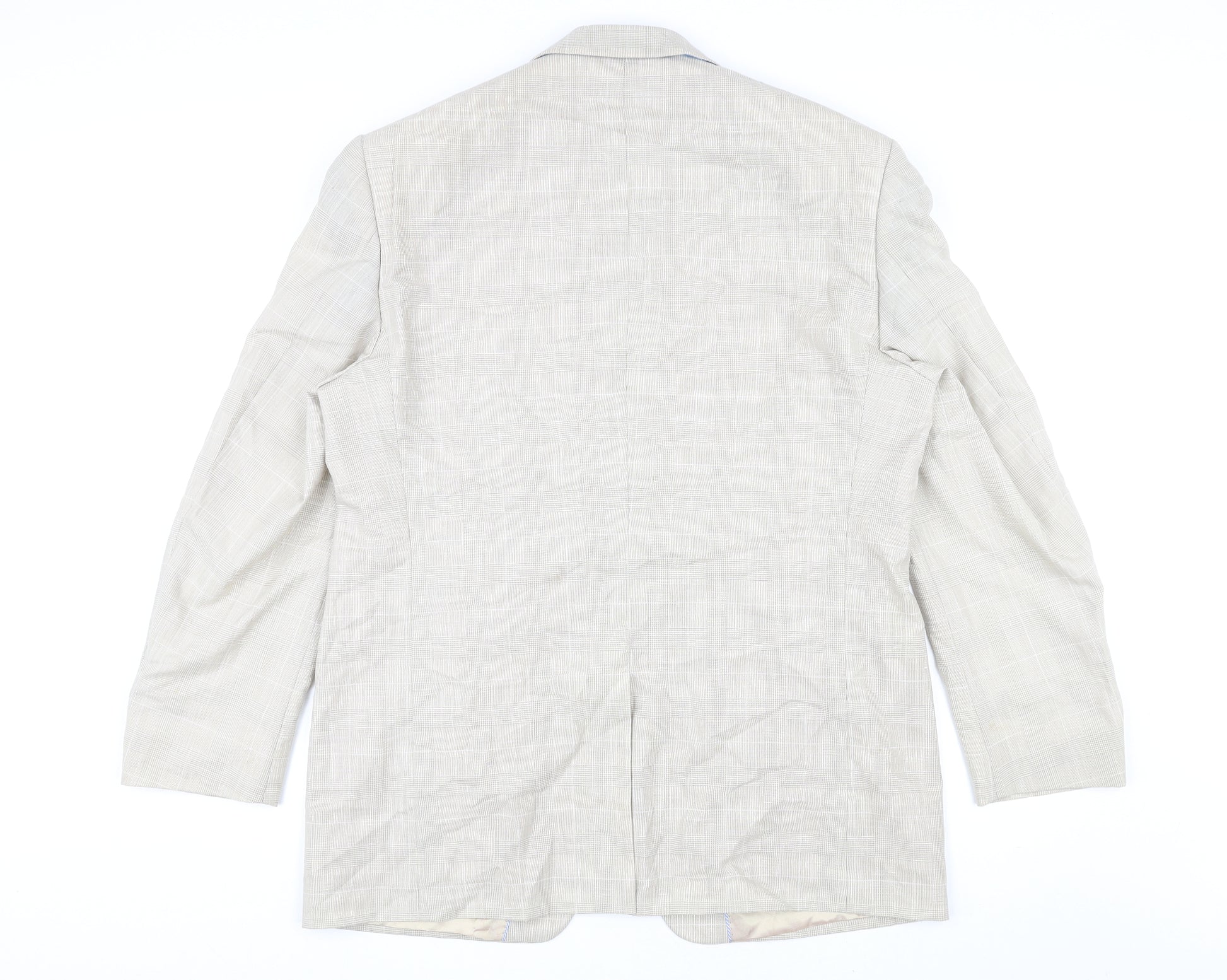 Mens Beige Plaid Wool Jacket Suit Jacket Size 54 Regular