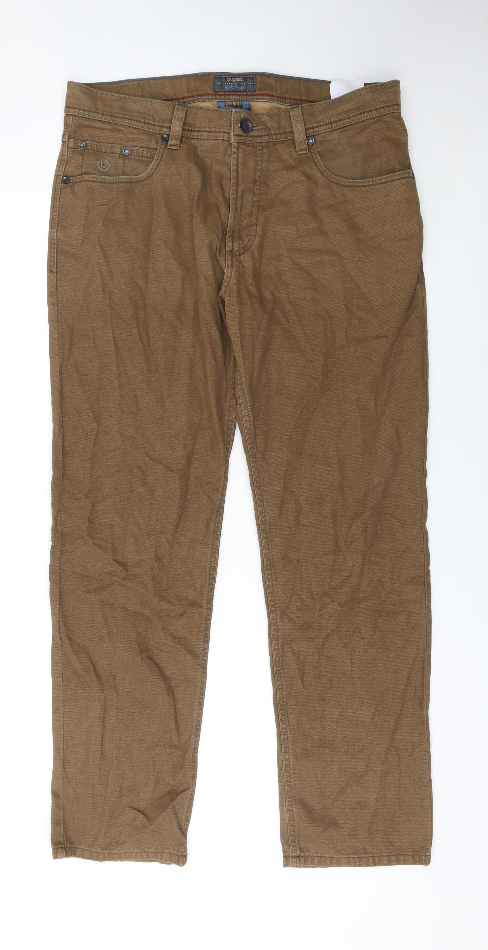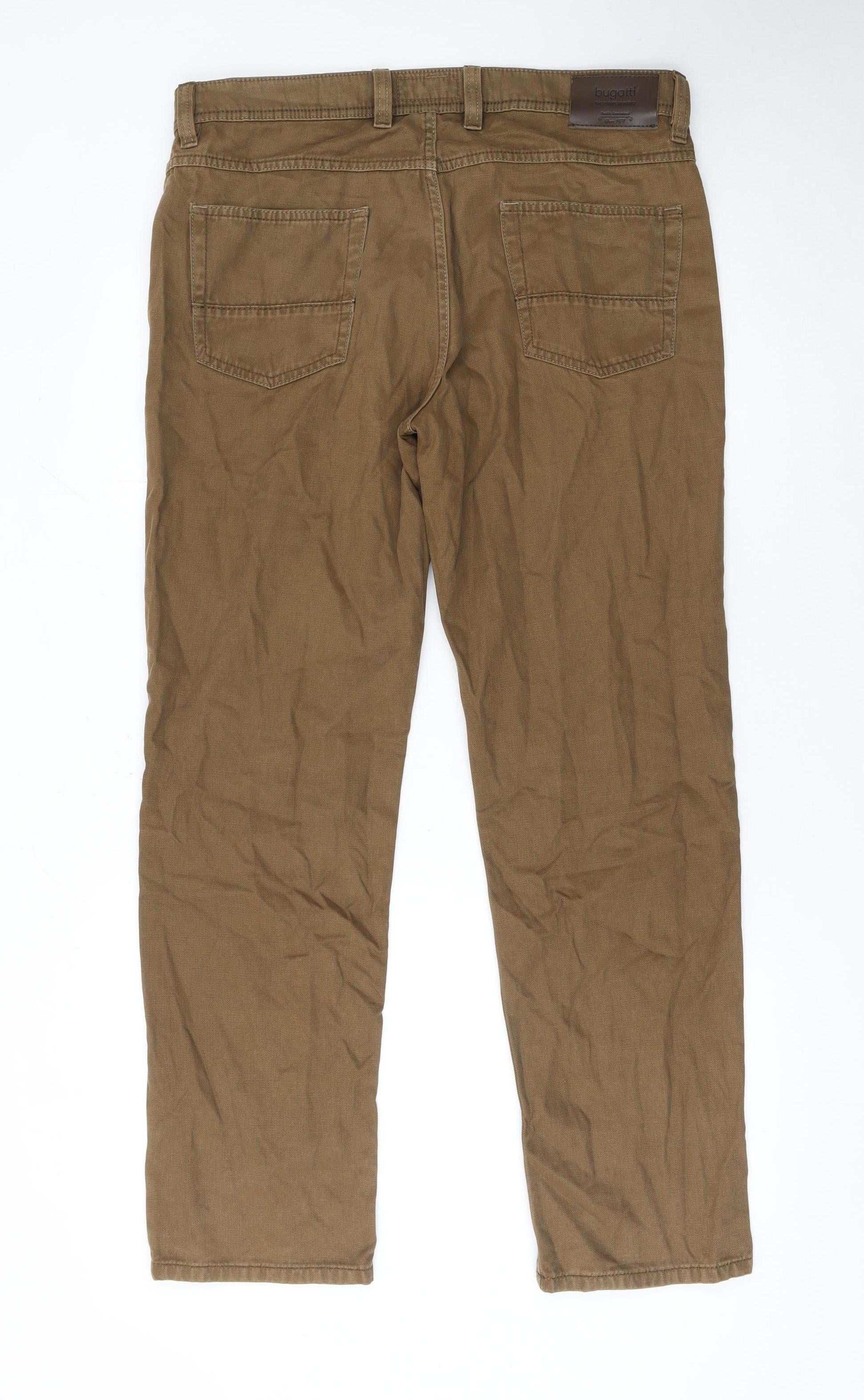 Enhance your casual wardrobe with these high-quality Bugatti Men’s Straight Fit Jeans in a versatile brown tone. Designed for the modern man, these jeans strike a balance between comfort and timeless style. Crafted from a premium cotton-rich denim blend with a touch of elastane, they offer both breathability and slight stretch for ease of movement throughout the day. The durable medium-weight fabric ensures longevity while maintaining a soft feel against the skin. Ideal for cooler seasons like autumn, spring, and winter, these jeans can easily transition from daywear to evening looks with effortless style. The classic five-pocket design adds functional convenience, complemented by secure button and zip closure. Their mid-rise waist provides a flattering and comfortable fit suitable for everyday wear. The straight leg cut gives a traditional silhouette that pairs perfectly with casual shirts, polos, or jumpers. With Bugatti’s European craftsmanship, attention to detail is evident in the neat stitching and subtle tonal hardware. These jeans are machine washable for easy care, offering practicality along with refined styling. Although gently used, they remain in excellent condition, showing only minimal signs of wear. Whether heading out for a relaxed weekend or smart-casual outing, these Bugatti jeans promise dependable comfort and enduring sophistication. A reliable wardrobe staple that fuses elegance with everyday ease, suited to men who appreciate understated luxury. Perfect for pairing with suede boots or clean trainers for that contemporary yet timeless appeal.