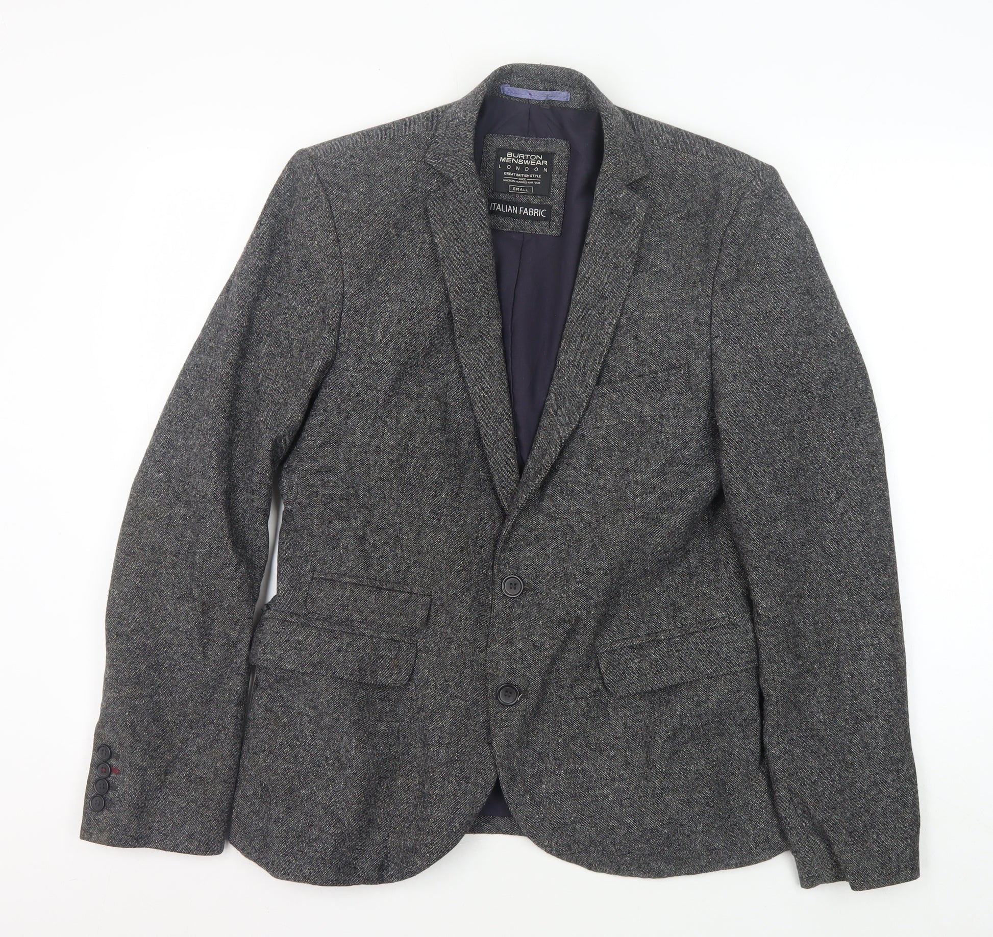 Step up your style game with this exquisite Burton Menswear grey tweed blazer. Crafted from high-quality wool and featuring a classic single-breasted cut, this men's blazer is perfect for adding a smart layer to any outfit. Its sleek notch lapel and double-vented back provide a modern touch, allowing you to wear it for any casual occasion with confidence. A two-button front closure combined with a traditional four-button sleeve design ensures a snug fit and classic look.This grey blazer is made from Italian fabric, exuding sophistication and quality. The tweed texture gives it a refined look, ideal for autumn and winter outings. Although slightly worn, it remains in very good condition and lacks any obvious flaws, making it a must-have for your wardrobe.Whether you're heading to a business meeting or a casual evening out, this blazer offers versatility and charm. Pair it with a crisp white shirt and dark trousers for a classic ensemble. Buy now and elevate your wardrobe with this timeless piece of menswear.