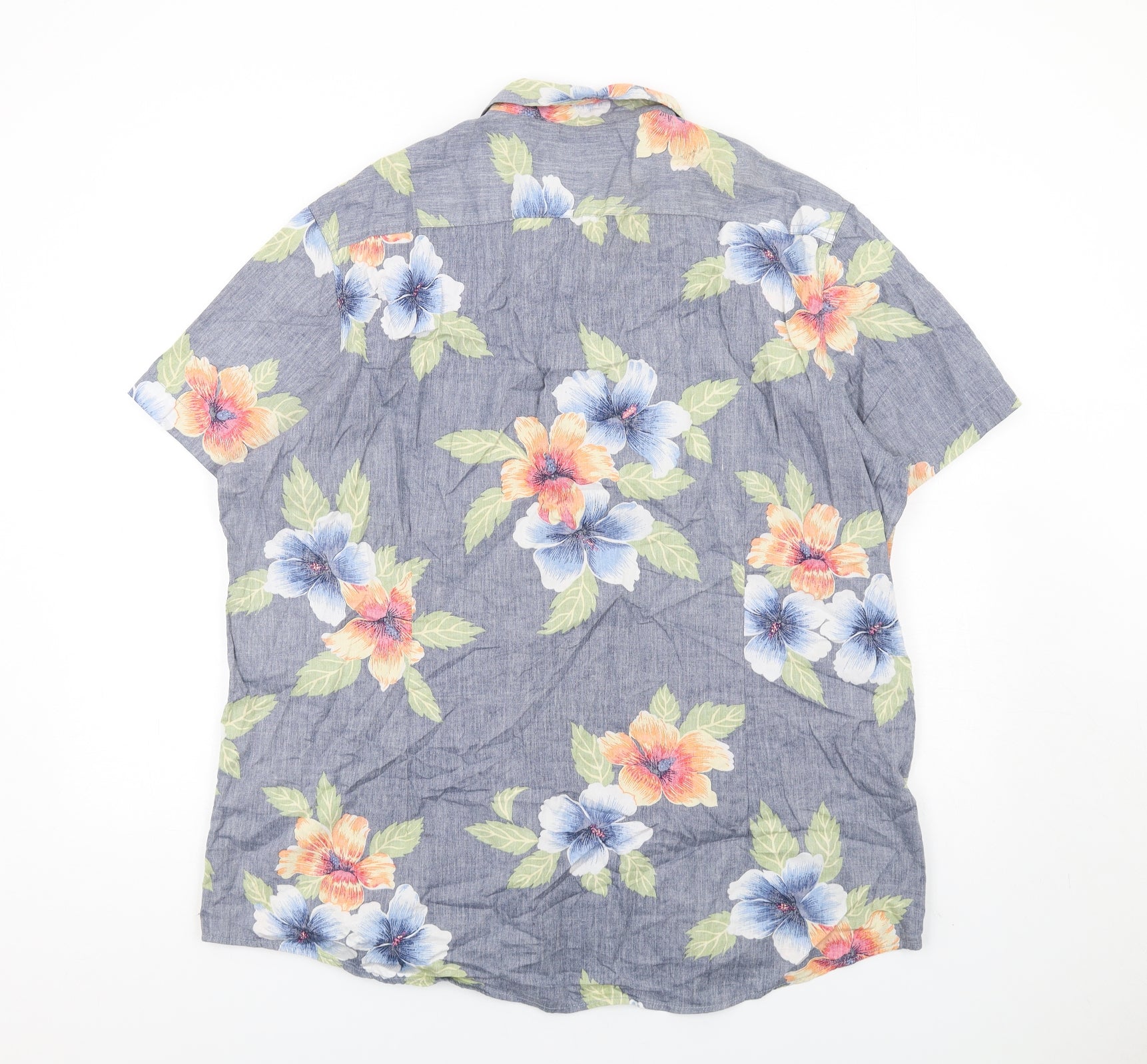 Mens Blue Floral Cotton Button-Up Size 2XL Collared Button