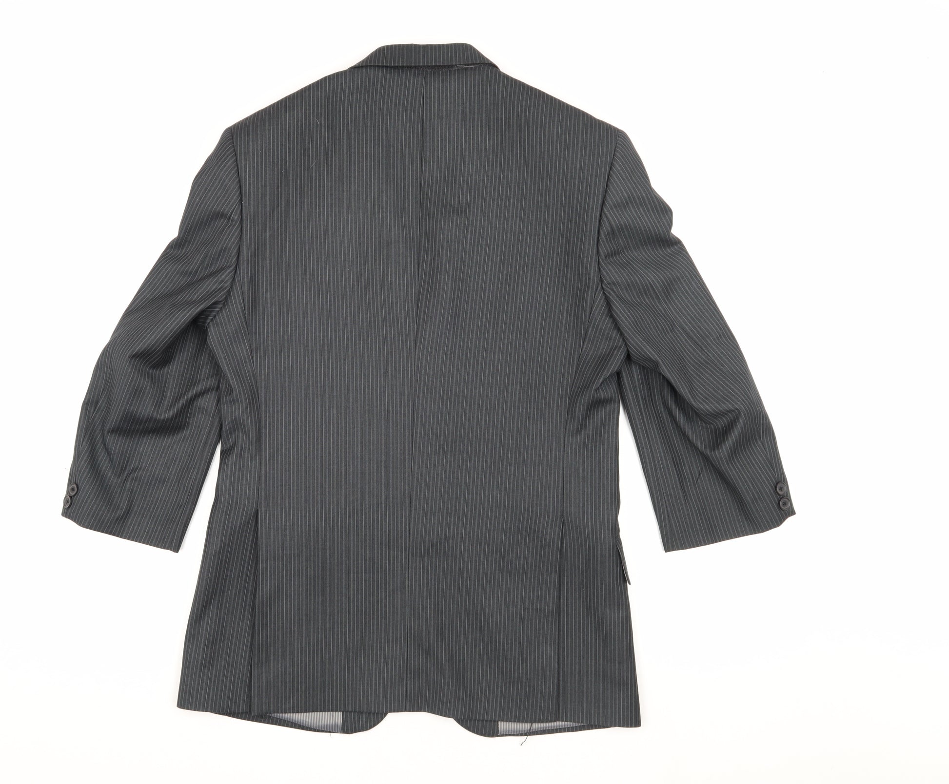Elevate your formal wardrobe with this Burton Men's Suit Jacket in a smart grey striped design. Crafted for the modern gentleman, this jacket combines style with sophistication, making it perfect for both business and formal occasions. The tailored fit enhances your silhouette, offering a sleek and contemporary look.The jacket is made from a blend of 65% polyester and 35% viscose, ensuring both comfort and durability. It's designed with a regular coat length, featuring a classic notch lapel, double-vented back, and two-button front that complements a single-breasted cut. The addition of three-button cuffs further enhances its refined style.Ideal for autumn and spring, this suit jacket adds a touch of elegance to any ensemble. It's lined in polyester for a smooth finish and includes handy inner pockets for practicality. While the condition is excellent with slight wear, the absence of original tags is noted, offering a great purchase at a competitive price.Whether you're attending a meeting, wedding, or formal event, this jacket is sure to make a statement. Pair it with matching trousers and a crisp shirt for a complete, polished look. Invest in a timeless piece that combines quality craftsmanship with elegant design, ensuring you feel confident and stylish at every occasion.