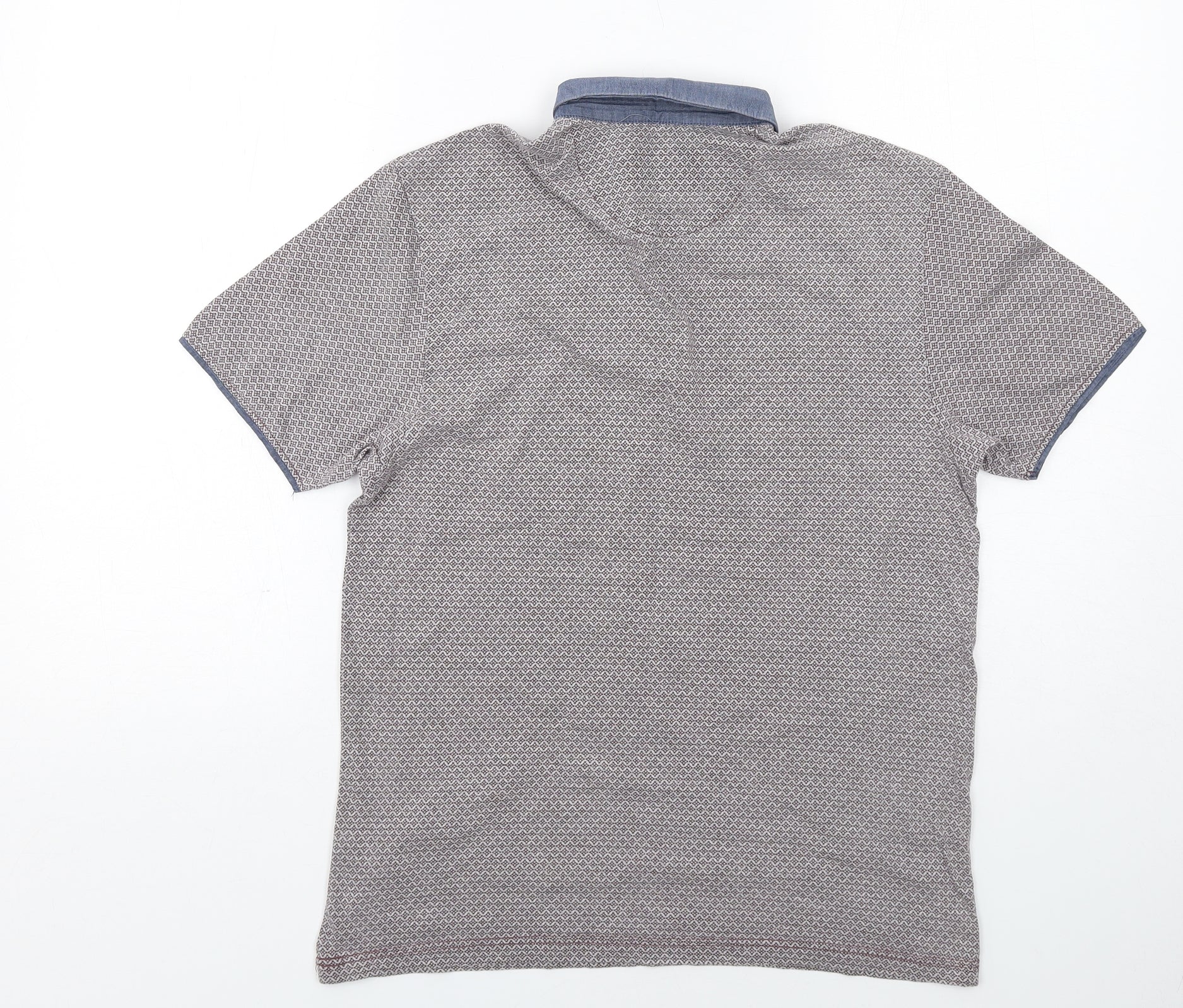 Mens Red Geometric Cotton Polo Size S Collared Button