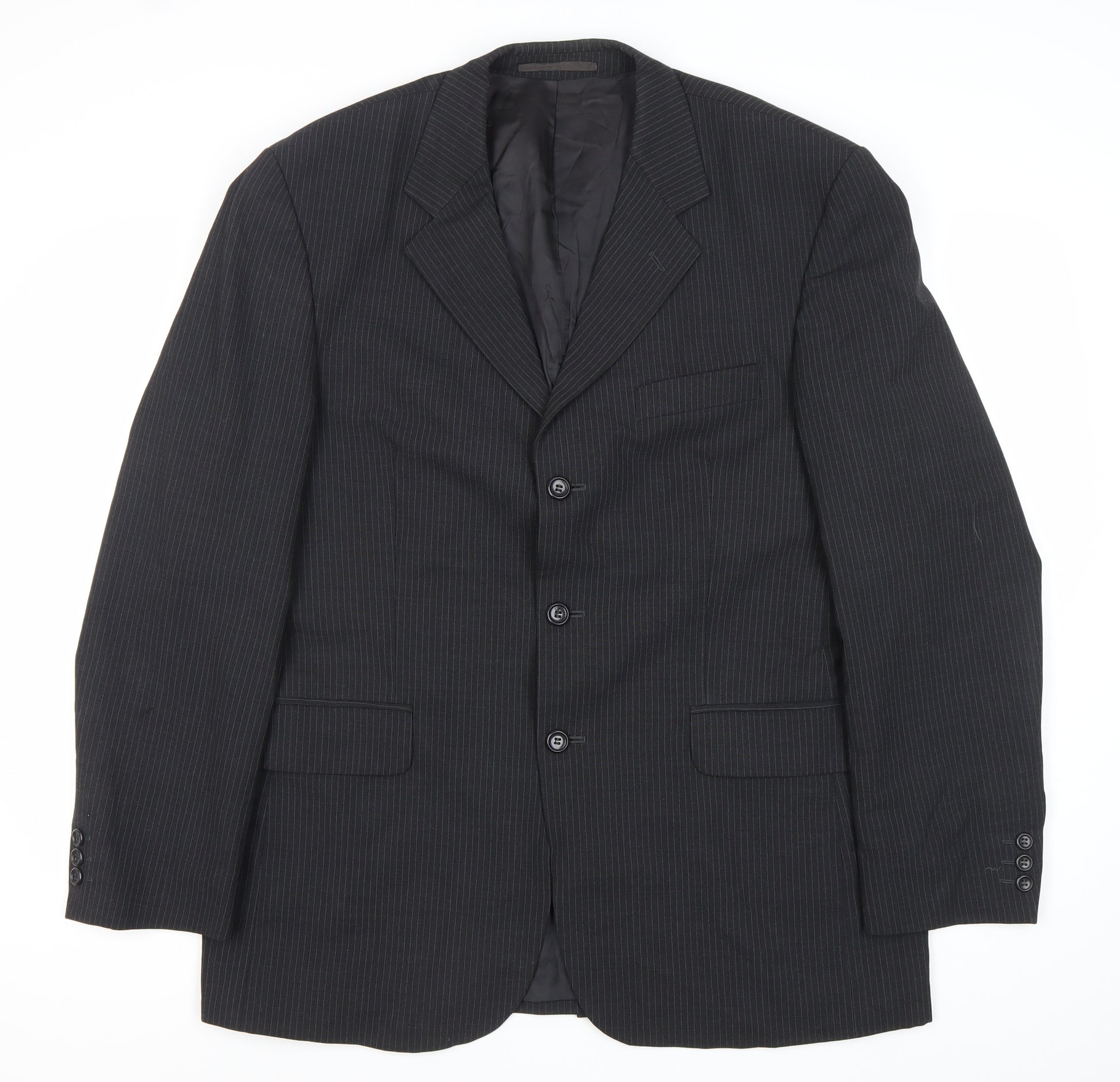 Regular price£34.75£3475Regular priceUnit price / perSale price £34.75 GBPRosselini Men’s Black Pinstripe Wool Two-Button Blazer Jacket 42