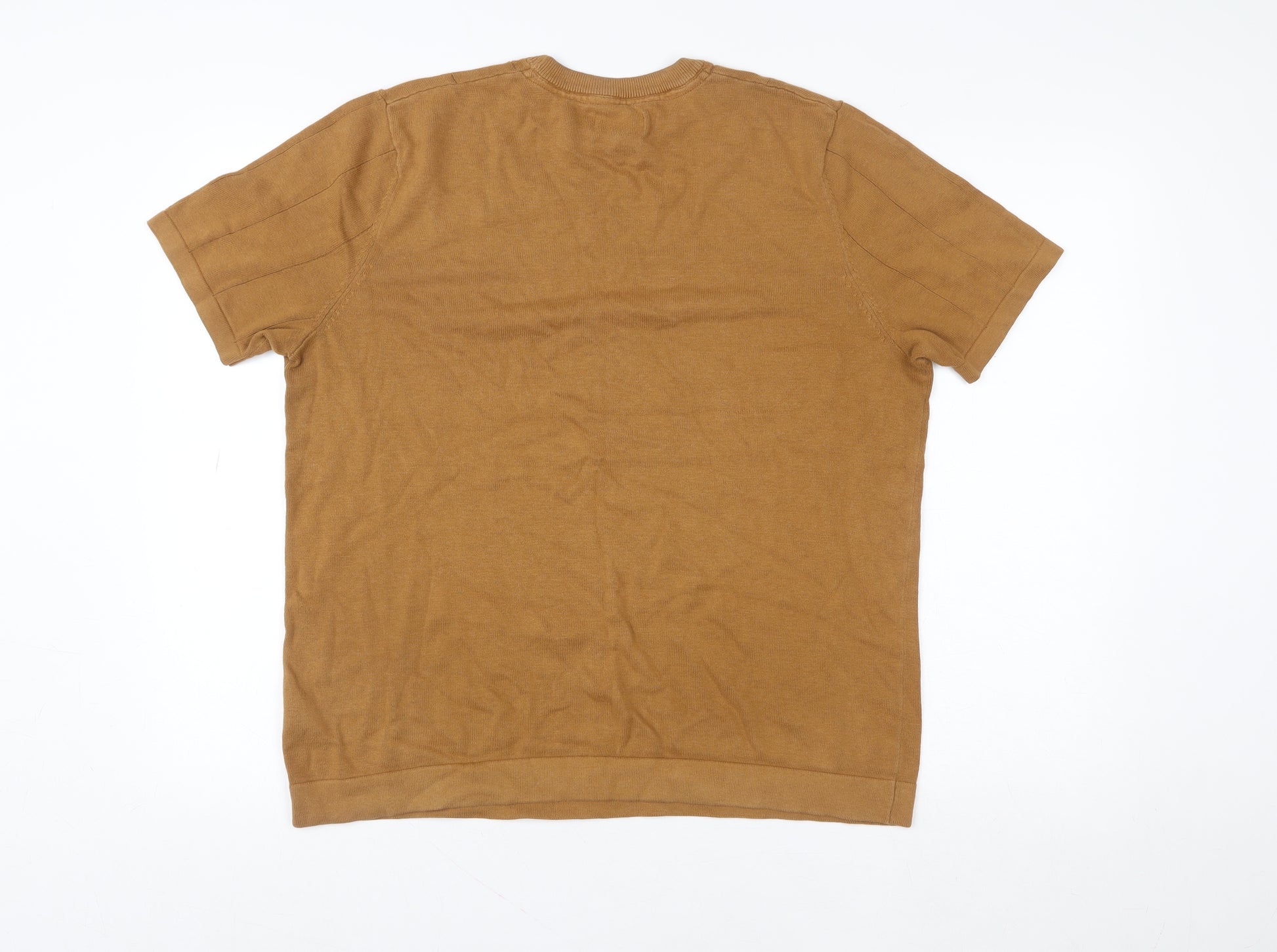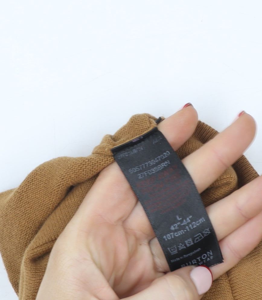 This Burton Menswear brown crew neck T-shirt is a timeless addition to any man’s wardrobe. Crafted entirely from soft 100% cotton, it offers a lightweight and breathable feel—perfect for all-day comfort across spring, summer, and autumn seasons. Designed in a solid brown tone with subtle vertical knit detailing, the shirt maintains a refined yet casual appearance that can easily transition from smart-casual outings to relaxed weekend wear. The regular fit ensures an easy silhouette, providing both style and freedom of movement without being overly loose. The ribbed crew neckline and short sleeves add a classic touch, while the fine knit fabric enhances softness and quality. Burton Menswear, known for its men’s fashion heritage and smart modern pieces, delivers understated sophistication through this essential T-shirt. The piece is easy to maintain thanks to its machine-washable construction, perfect for those favouring convenience and durability, while the breathable cotton fabric keeps you comfortable throughout the day. Ideal for pairing with jeans, chinos, or shorts, this top can be dressed up with a blazer or worn casually on its own for effortless versatility. Its clean lines and solid pattern make it a great base layer for layering under shirts or jumpers during cooler months. In excellent pre-owned condition, this T-shirt shows light signs of previous wear without any noticeable marks, tears, or damage, retaining its original colour and shape. Offering a blend of contemporary minimalism and dependable comfort, this Burton Menswear tee is a wardrobe staple that fits seamlessly into both modern and traditional looks. A well-crafted, comfortable essential suitable for men who appreciate quality UK high street design at an affordable price.