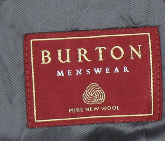 Enhance your wardrobe with this sophisticated Burton Menswear blazer, ideal for both business meetings and formal events. Crafted from 100% pure new wool, this grey jacket offers a classic yet contemporary look that suits various occasions. Designed with a regular fit, it ensures ease of movement and comfort without compromising on style. The jacket features a single-breasted cut and a notch lapel, adding a refined touch to its design. With its regular coat length, this blazer drapes elegantly over any outfit, making it a versatile addition to your wardrobe.The interior is lined with 100% viscose, providing a smooth finish against the skin, and the jacket is double-vented to maintain a sharp silhouette. The three-button front and four-button cuffs complete the chic yet timeless aesthetic. Suitable for autumn and winter wear, this blazer is perfect for transitioning between seasons while keeping you stylishly warm.With no noticeable signs of wear, the jacket remains in excellent condition, ready to make an impression. Whether paired with formal trousers or worn over a casual shirt and jeans, this blazer from Burton Menswear is a smart choice for the discerning gentleman.