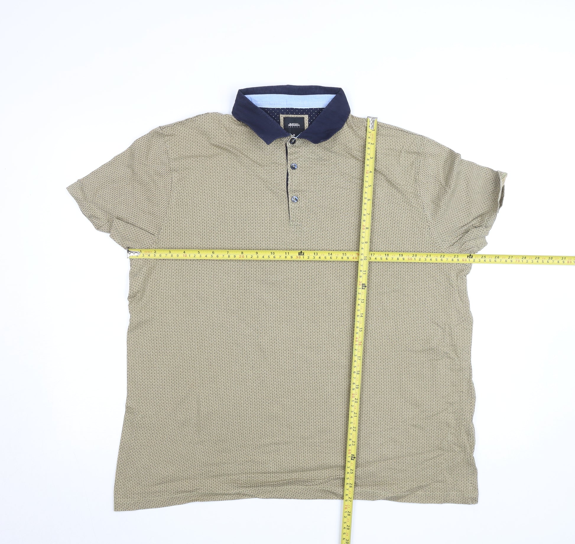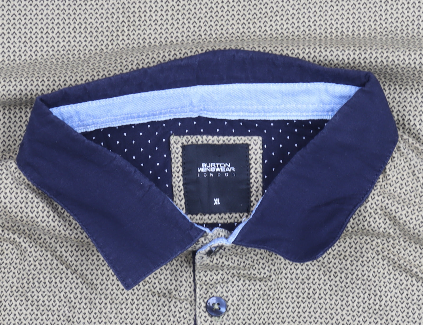 This Burton Menswear London beige geometric Polo Shirt in size XL offers a polished yet casual look that’s perfect for any summer occasion. Crafted from pure cotton, this polo provides excellent comfort, softness, and breathability, making it an ideal addition to your wardrobe for both smart-casual outings and relaxed weekends. The intricate geometric pattern adds a subtle but stylish touch, giving the shirt visual texture while maintaining a versatile, understated elegance. The shirt features a classic point collar in navy blue with light blue trim detailing, creating a refined contrast that enhances the overall aesthetic. The short sleeves keep it cool and casual, while the button placket front adds a polished finish typical of quality polos. Designed in soft jersey cotton, this piece promises durability and ease of movement without compromising on fit or comfort. Suitable for pairing with chinos, jeans, or shorts, it’s the perfect go-to option for sunny days, casual Fridays, or evening get-togethers. In very good pre-owned condition, this item shows light signs of wear but remains in excellent shape, free from marks or damage. Its easy-care, machine washable fabric ensures effortless maintenance and long-lasting freshness. Whether you’re heading to a casual brunch or an outdoor event, this Burton Menswear Polo Shirt provides a timeless look with a modern twist that suits a variety of outfits and occasions. Ideal for the modern man who values both quality and contemporary design, it combines comfort, practicality, and effortless style. A true wardrobe essential that brings versatility to your daily wear—designed to look good and feel great wherever you go.