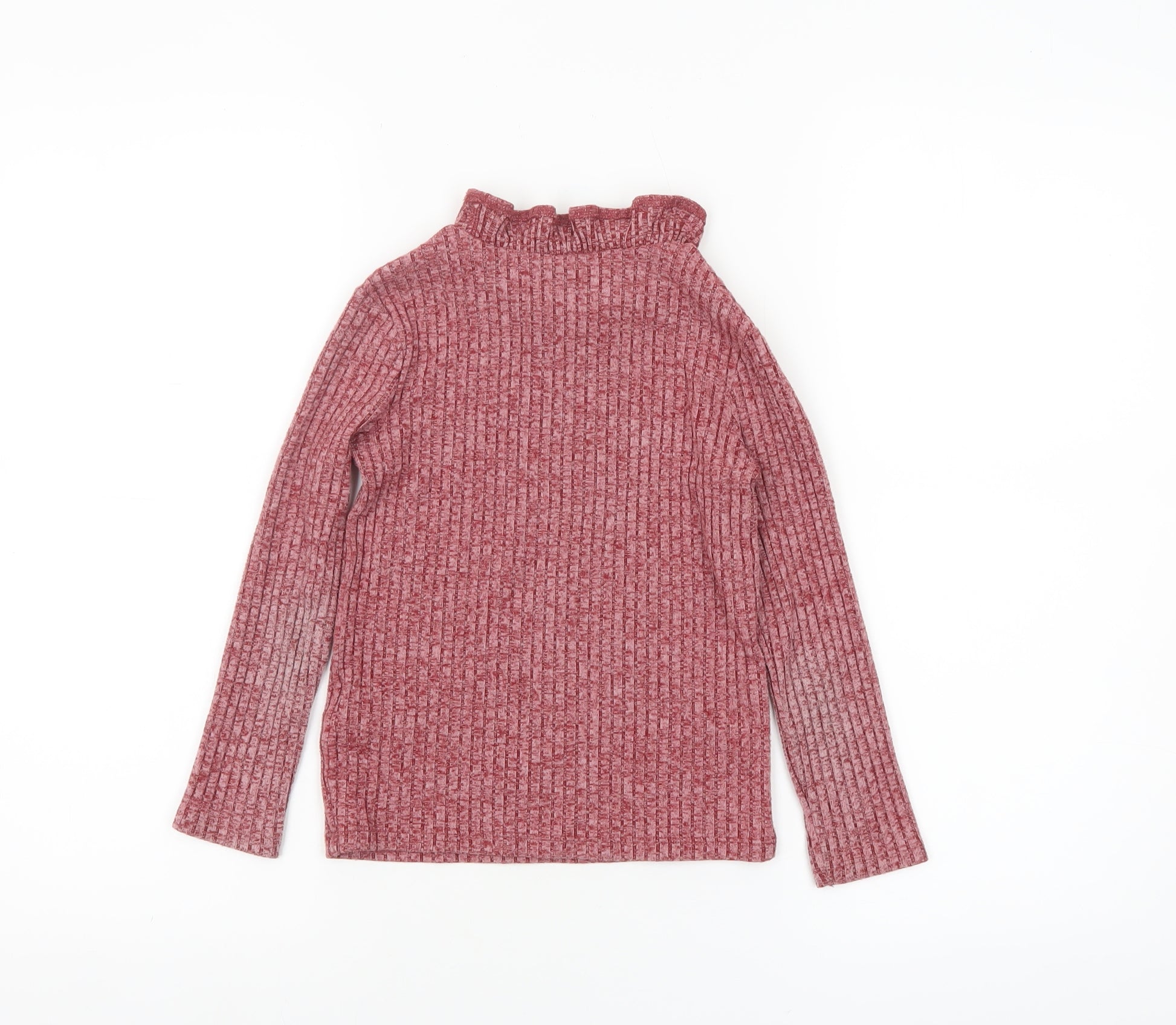 Girls Pink Ribbed High Neck Long Sleeve Pullover Top Size 7 Years