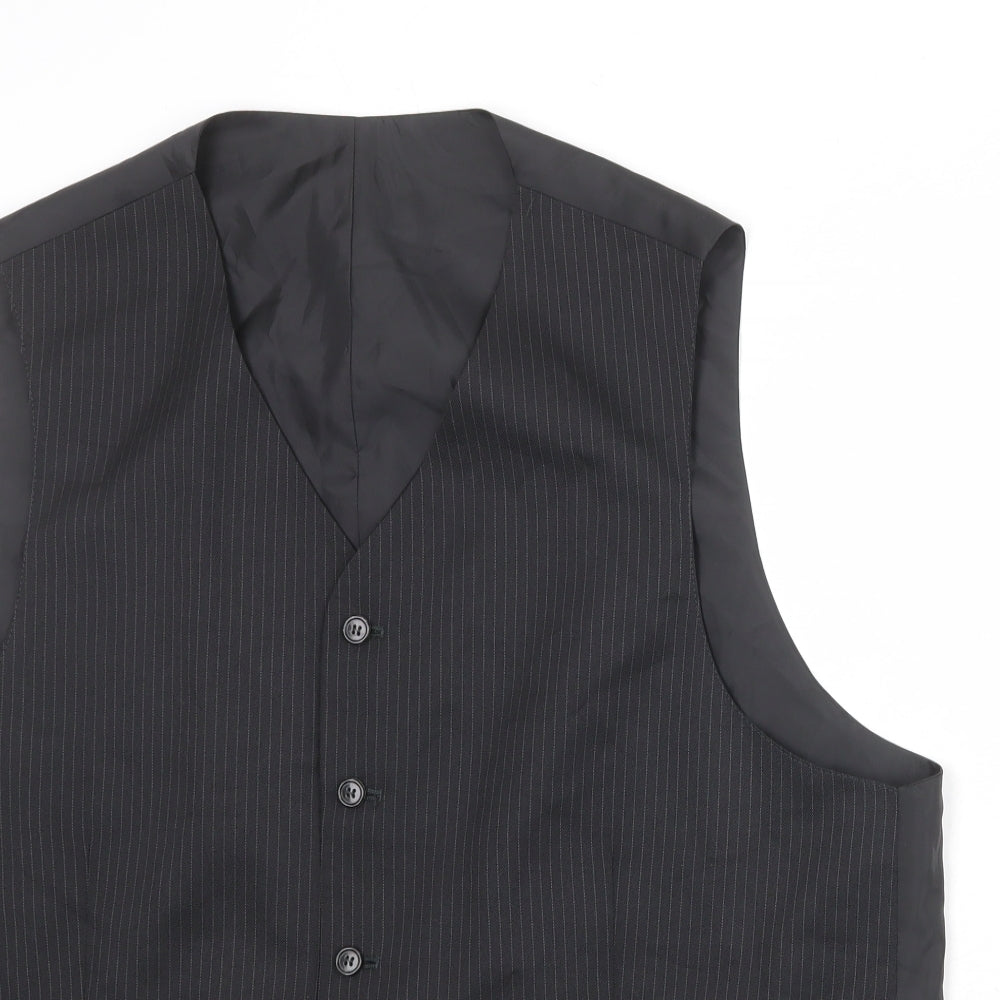 Mens Black Striped Polyester Jacket Suit Waistcoat Size 58 Regular