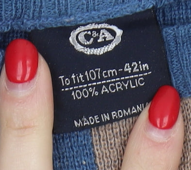 Elevate your casual wardrobe with this C&A Men's Blue Striped Pullover Jumper in size XL. Crafted from 100% acrylic, this jumper offers warmth and comfort, making it an ideal choice for both autumn and winter months. The classic crew neck and long sleeve design ensure a timeless appeal that can be paired effortlessly with jeans or trousers for a laid-back yet stylish look. The tight-knit fabric is complemented by a subtle striped pattern in varying shades of blue and beige, adding a touch of visual interest to the overall design. Perfect for casual occasions, this jumper promises to keep you cosy and stylish, whether you're heading out for a weekend outing or a relaxing day at home. Easy to care for, this machine washable jumper retains its shape and softness, maintaining its excellent condition over time. Despite minimal signs of wear, this jumper remains in excellent condition, ready to become a staple in your seasonal wardrobe. Embrace a blend of comfort and style with this versatile pullover that effortlessly captures a laid-back essence, providing the perfect addition to any gentleman's collection.