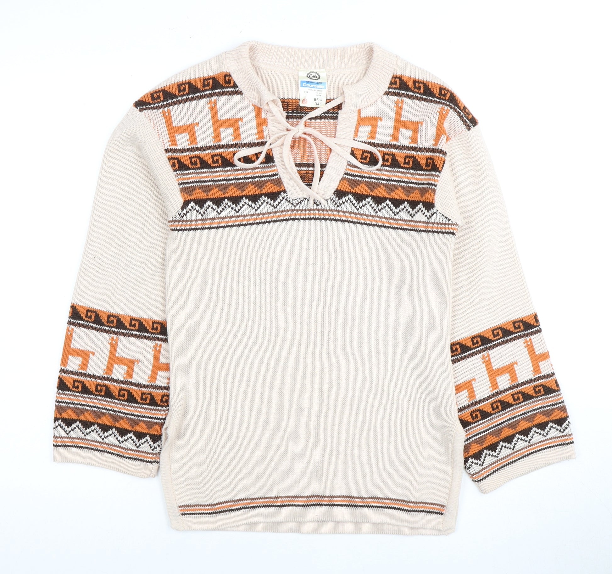Women's Beige Animal Print Acrylic Jumper Size 12