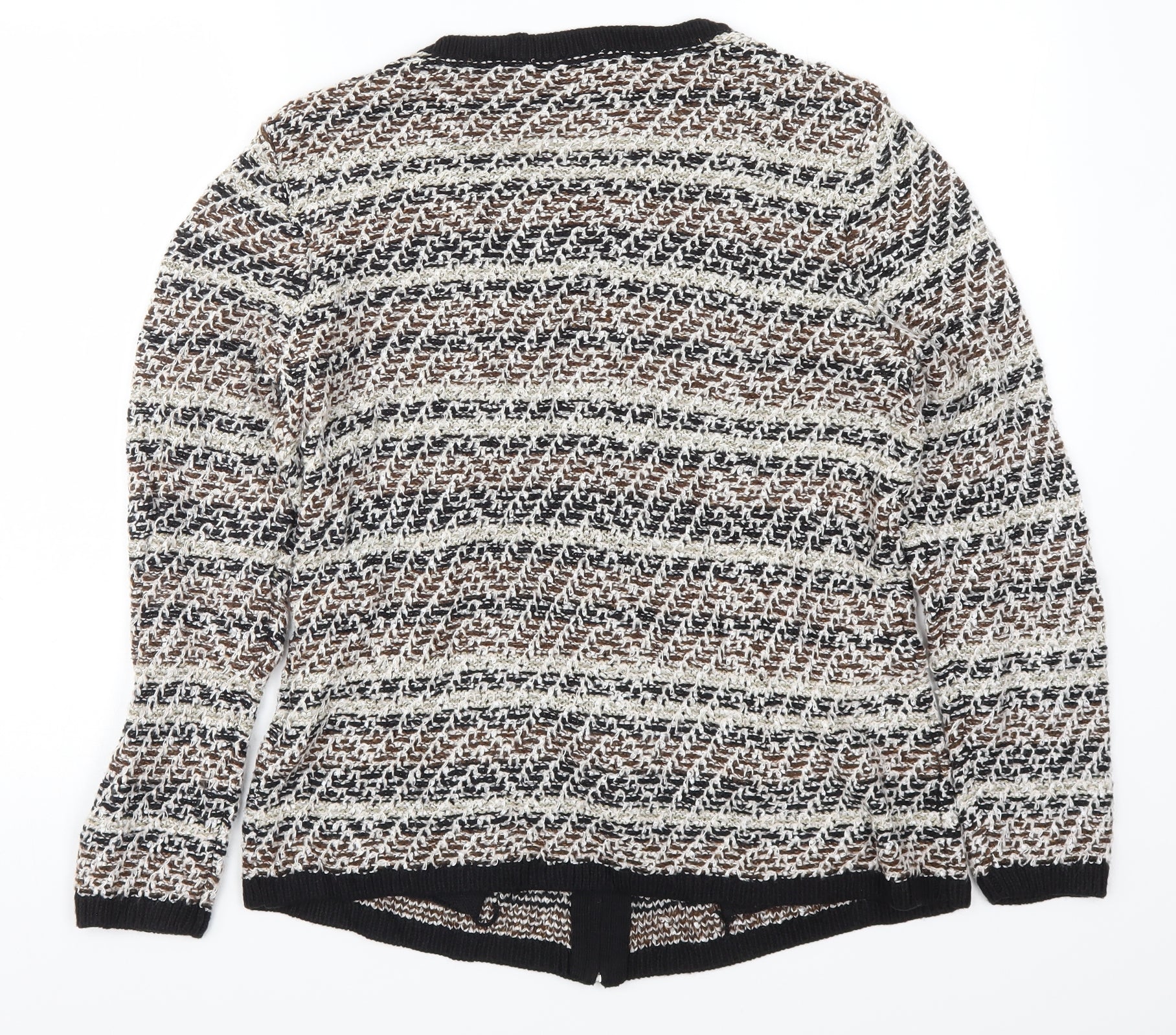 Womens Brown Striped Knit Full Zip Jumper Size M