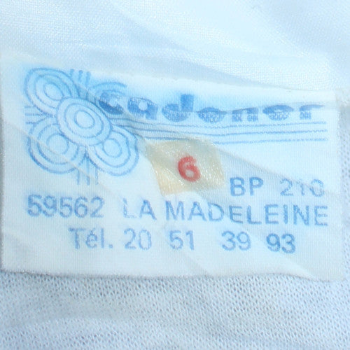 This vintage Cadence men’s windbreaker jacket is a stylish nod to classic retro sportswear. Designed in a striking two-tone blue and white colourway, the jacket features a lightweight polyamide outer that delivers both durability and comfort. Its full zip closure, elasticated waist and cuffs, and soft cotton lining make it perfect for casual wear or light outdoor activity. The collar carries a red trim accent that adds a bold contrast, while the 'Le Sport Scolaire' logo detail gives it authentic 80s appeal. Ideal for layering, this jacket offers a relaxed and versatile fit suitable for spring, autumn, and cooler summer days. The breathable material ensures comfort during everyday wear, whether you're out for a jog, walk, or heading to a casual outing. Although previously worn, the jacket remains in very good condition with only light markings visible on the surface, consistent with gentle vintage use. Its vibrant colour combination and nostalgic design make it a standout piece for fans of classic sports style. The elastic waistband ensures a comfortable fit, and the front zip closure allows for easy wear. This jacket pairs easily with jeans, joggers, or shorts, creating an effortless athletic look with an authentic retro touch. Perfect for collectors of vintage fashion or anyone looking for a unique, functional wardrobe statement that blends sport-inspired design with timeless charm.