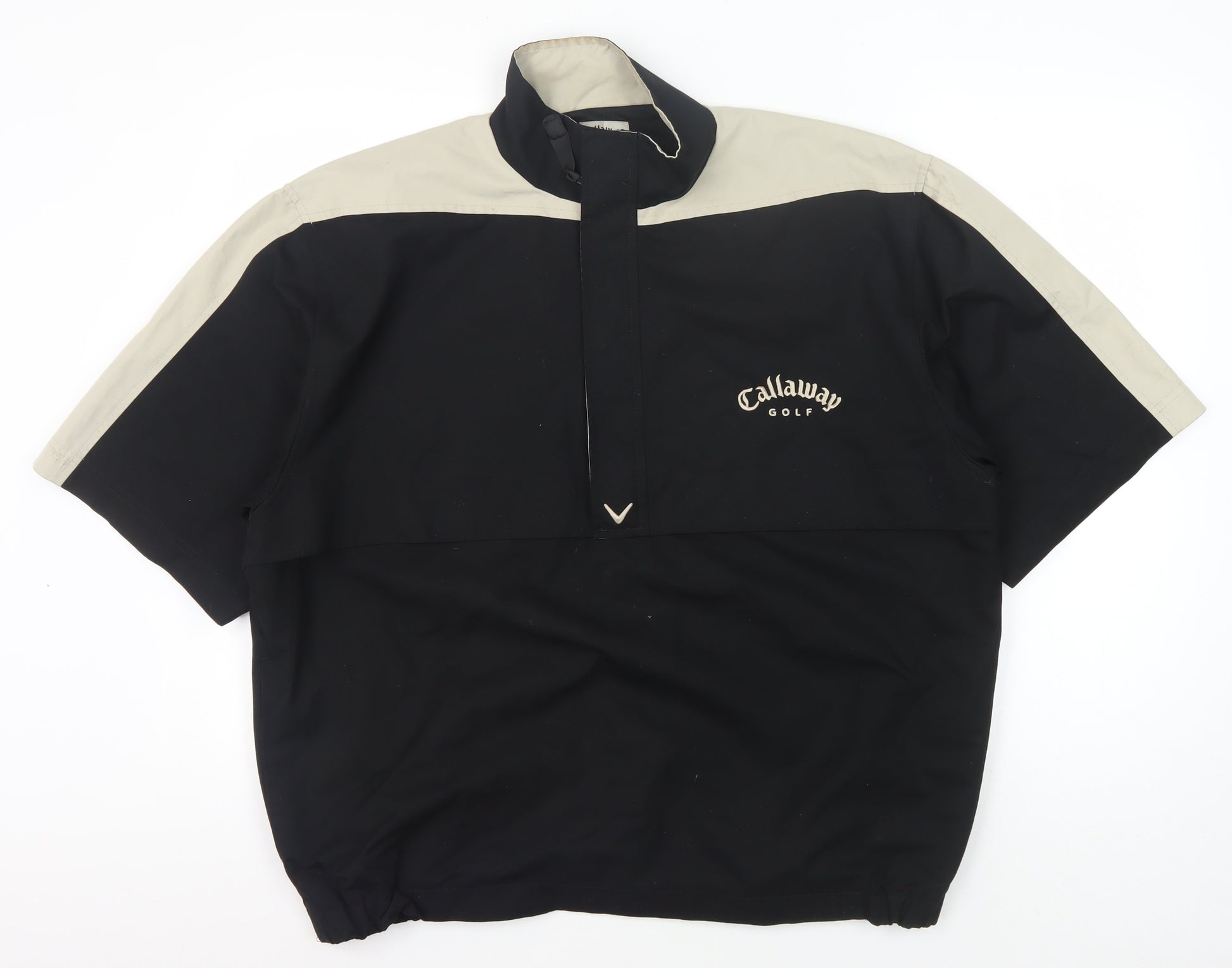 Experience comfort and style on the golf course with the Callaway Men's Golf Pullover. Crafted from 100% polyester, this lightweight and breathable piece ensures you stay comfortable during your rounds. Ideal for spring, summer, and autumn play, it features a classic stand-up collar and a practical zip closure for easy wear. The short sleeves and regular fit provide a relaxed feel, while the solid black and beige colour scheme offers a versatile look. Perfect for casual and activewear occasions, this pullover is finished with the iconic Callaway logo accent, underscoring its authentic sports theme. Machine washable for easy care, this is a great addition to any golfing wardrobe.