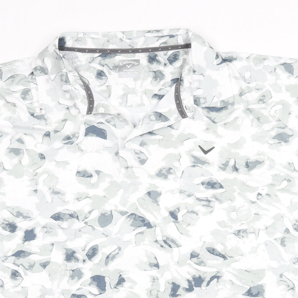 Mens Green Geometric Polyester Polo Size 4XL Collared Button