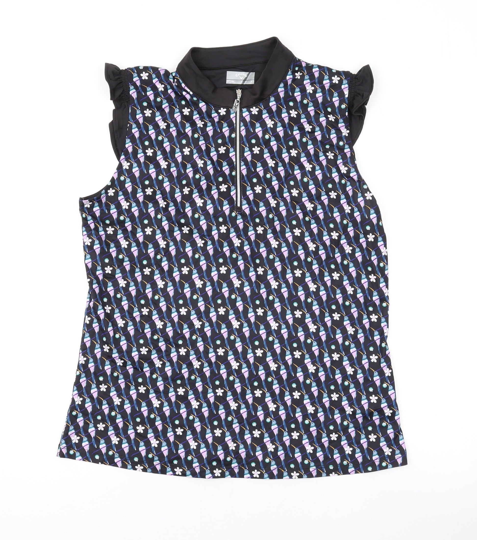 Womens Black Geometric Polyester Basic Tank Size L V-Neck Zip - Golf