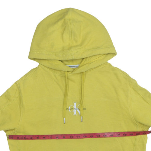 Upgrade your casual wardrobe with this vibrant yellow Calvin Klein Jeans men’s pullover hoodie, designed for effortless modern style and comfort. Crafted from a soft jersey blend of 90% cotton and 10% polyester, this hoodie offers a breathable and durable wear suitable for multiple seasons such as autumn, spring, and mild winter days. The classic pullover design features a comfortable drawstring hood, ribbed cuffs and hem for a snug fit, and a convenient front kangaroo pocket ideal for keeping your hands warm or storing small essentials. The front displays the iconic Calvin Klein 'ck' logo, giving this hoodie an instantly recognisable, minimalist appeal that works well for casual, streetwear, or lounge looks. The regular fit and crew neckline make it flattering and versatile for layering with jeans, joggers, or shorts. Perfect for men who appreciate quality, timeless design, and everyday sophistication, this hoodie balances premium fashion with laid-back practicality. The machine-washable fabric ensures easy care and long-lasting wear. Though in excellent pre-owned condition with only minor creasing from storage, it remains a fantastic choice for anyone seeking a comfortable and stylish hoodie from one of the world’s most recognised designer brands. Whether you’re dressing for a casual day out, travelling, or relaxing at home, this Calvin Klein Jeans pullover hoodie combines iconic branding, modern design, and superior comfort to elevate your casual outfit with minimal effort.