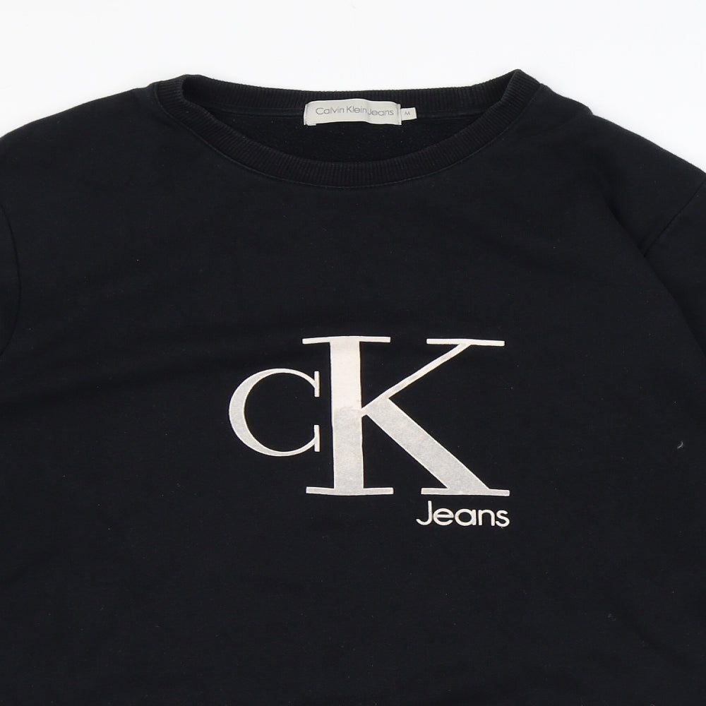 Mens Black Cotton Pullover Sweatshirt Size M - Logo