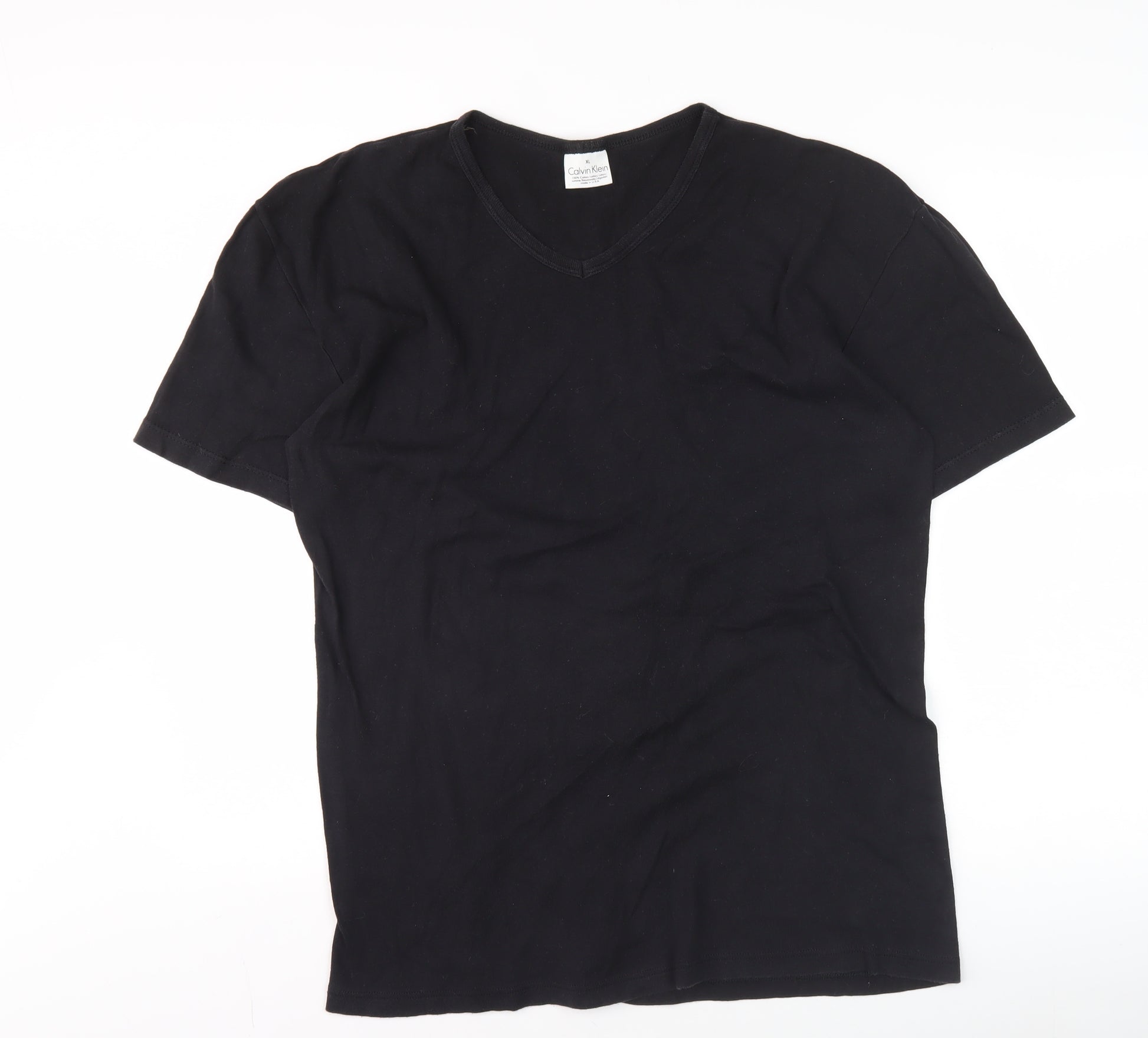 Upgrade your casual wardrobe with this classic Calvin Klein men's black T-shirt, crafted from 100% soft jersey cotton for superior comfort and breathability. This versatile piece offers a regular fit and a timeless V-neck design, making it perfect for everyday wear. The short sleeves and lightweight construction make it ideal for summer, but it can also be layered under jackets or hoodies for year-round styling. The deep black colour gives it a modern, sleek look that pairs effortlessly with jeans, chinos, or shorts for a range of smart-casual to relaxed outfits. Made in the U.S.A., this T-shirt exemplifies quality craftsmanship while maintaining a minimalist, understated style that Calvin Klein is renowned for. Its solid pattern and clean lines make it a wardrobe staple that you’ll reach for time and again. Whether heading out for a laid-back weekend, off to the gym, or just lounging at home, this shirt’s breathable cotton fabric ensures you stay cool and comfortable. The piece is in very good condition with only minimal signs of previous wear, ensuring great value and longevity. Ideal for men who prefer simplicity with style, this T-shirt delivers on both comfort and fashion effortlessly. Don't miss the opportunity to add this timeless staple to your collection—functional, fashionable, and unmistakably Calvin Klein.