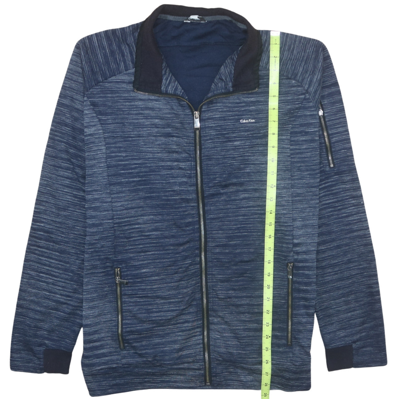 Upgrade your casual wardrobe with this stylish Calvin Klein men's full zip sweatshirt in a versatile blue hue. Designed with comfort and practicality in mind, it features a lightweight jersey fabric blend of cotton, polyester, rayon, and a touch of elastane for a soft yet flexible feel. The full zip closure ensures ease of wear, while the two front zipped pockets and an additional sleeve pocket add functional storage and a sleek, modern touch. The regular fit and high neckline provide a flattering silhouette suitable for both casual outings and relaxed weekend wear. Perfect for layering, this sweatshirt is ideal for the autumn, spring, and winter seasons, offering warmth without compromising on style. The subtle Calvin Klein logo on the chest adds a signature finish synonymous with timeless modern design. Machine washable, it provides easy garment care for everyday use. Conditioned in excellent pre-owned state with no visible wear or damage, this item offers premium quality at outstanding value. Dress it up with chinos for a smart-casual look or pair it with joggers for a laid-back vibe. A wardrobe essential for men who appreciate comfort, quality, and refined design, this Calvin Klein sweatshirt blends practicality with effortless fashion appeal, perfect for walking, training, or simply lounging in style.