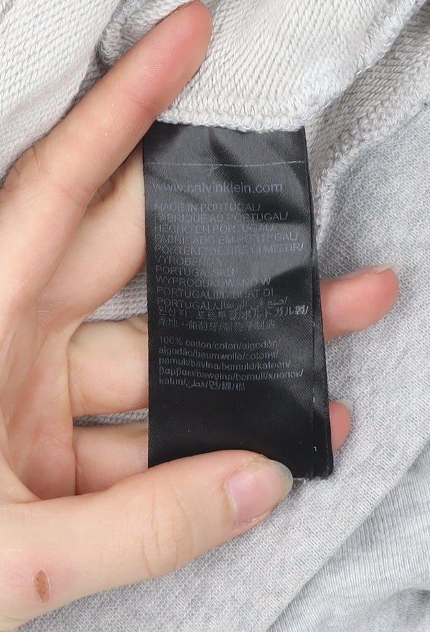 This Calvin Klein men's sweatshirt is a classic pullover piece that blends timeless style and casual comfort. Crafted from 100% cotton in a soft jersey fabric, it ensures breathability and wearability across multiple seasons, making it perfect for autumn, winter, and spring wear. The sweatshirt features a crew neckline and long sleeves, providing a versatile staple that pairs well with jeans, joggers, or layered outfits. Styled in a neutral grey shade, it is effortlessly adaptable while still carrying a standout touch with its embroidered 'C' college-style logo on the chest, giving it a sporty and collegiate-inspired finish.The pullover construction offers ease of wear, and its lightweight cotton material keeps it comfortable for everyday use. With its regular fit, this garment is suitable for most body types, striking a balance between relaxed comfort and a smart casual look. Designed with ribbed cuffs and hem, it maintains shape and adds to the classic sweatshirt styling, while the quality of Calvin Klein branding ensures lasting appeal. Ideal for casual days, laid-back weekends, or layering under a jacket, it adds both practicality and subtle style to a wardrobe.This particular piece is in good used condition, showing some light stains to the sleeves and cuffs; however, this does not detract from its overall wearability. It remains machine washable and easy to care for, promising continued use. With its simple yet bold detailing, this sweatshirt is especially great for those who appreciate understated fashion with a touch of iconic branding. Whether you are refreshing your casualwear collection or looking for a versatile branded piece at a great value, this Calvin Klein sweatshirt is an excellent choice. Its timeless crew neck design and comfortable cotton construction make it a wardrobe essential, perfect for stylish everyday wear.