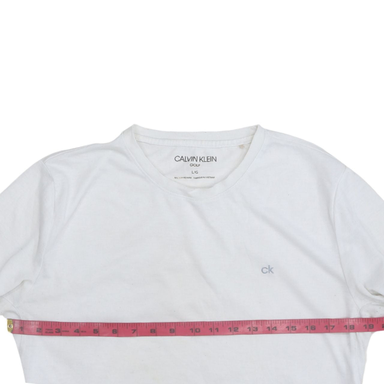 Step into effortless style and comfort with this Calvin Klein Golf white T-shirt, designed for the modern man who values both fashion and performance. Crafted entirely from lightweight, breathable polyester, this regular-fit tee delivers outstanding moisture wicking and quick-dry properties to keep you cool and comfortable whether you’re on the golf course or enjoying a casual day out. The sleek white colour pairs perfectly with any outfit, while the subtle 'ck' logo on the chest adds a refined designer touch that unmistakably reflects Calvin Klein’s minimalist aesthetic. Its crew neckline and short sleeves ensure a classic silhouette that’s universally flattering, allowing for full freedom of movement and a relaxed feel throughout the day. Ideal for summer wear and transitional seasons, this versatile T-shirt is simple to care for and machine washable, making it a practical addition to any wardrobe. The clean, solid pattern enhances its timeless appeal, meaning you can pair it effortlessly with jeans, trousers, or golf shorts for a polished yet laid-back look. Though lightly worn with faint marks on the front, it remains in very good condition and continues to hold its shape beautifully. Perfect for men who appreciate understated designer quality and a sporty edge, this Calvin Klein Golf tee offers an elevated casual option that performs as well as it looks. Give your wardrobe a refresh with this dependable piece that fits right into contemporary lifestyles, combining performance fabric with a signature touch of luxury from one of fashion’s most iconic brands. This T-shirt balances comfort, durability, and simplicity—making it a must-have staple for everyday wear or leisure activities. Whether you're heading out for a round of golf, a weekend outing, or simply relaxing at home, this Calvin Klein T-shirt ensures you do so in style and confidence.
